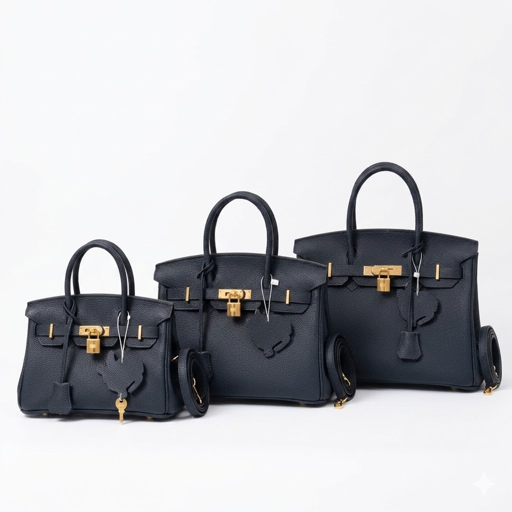 • 30cm 版 (Classic): 最经典的尺寸,适合那些需要更大容量或追求经典气场的女性。它可以轻松容纳小笔记本电脑和文件,非常适合作为通勤包或旅行包。上身效果稳重成熟,完美诠释了 Birkin 的经典地位。