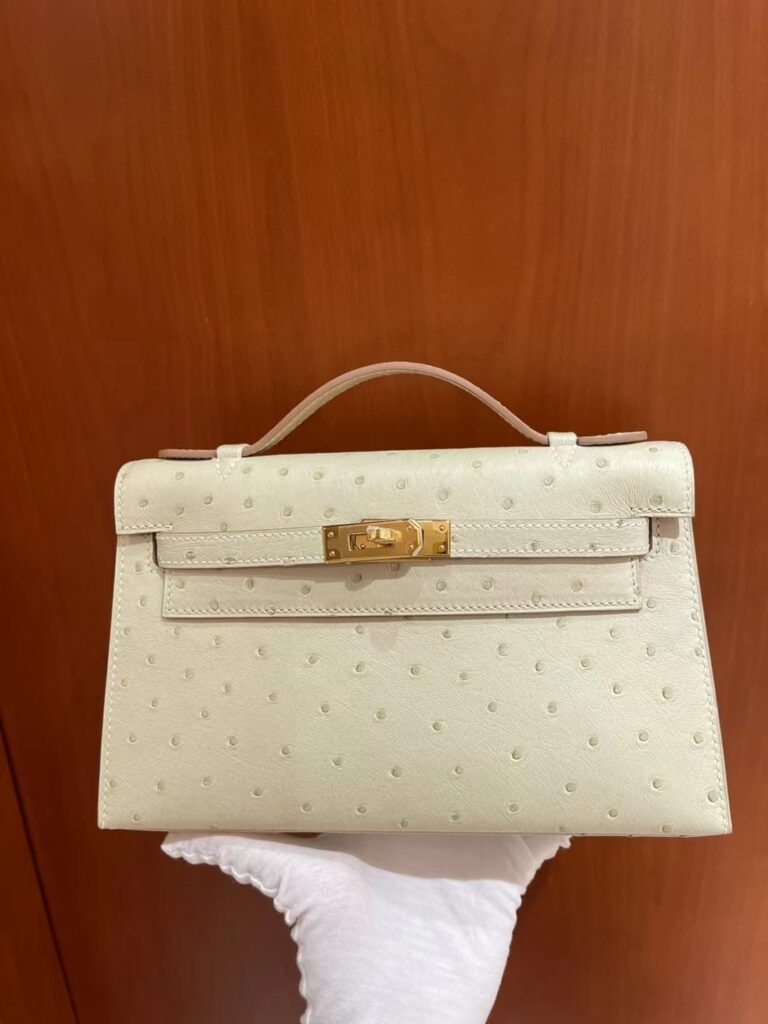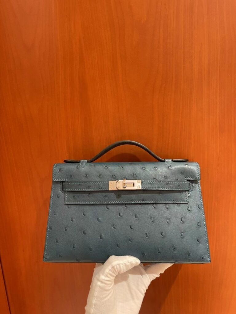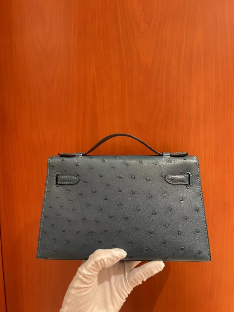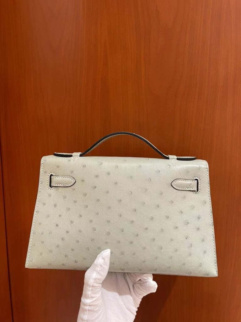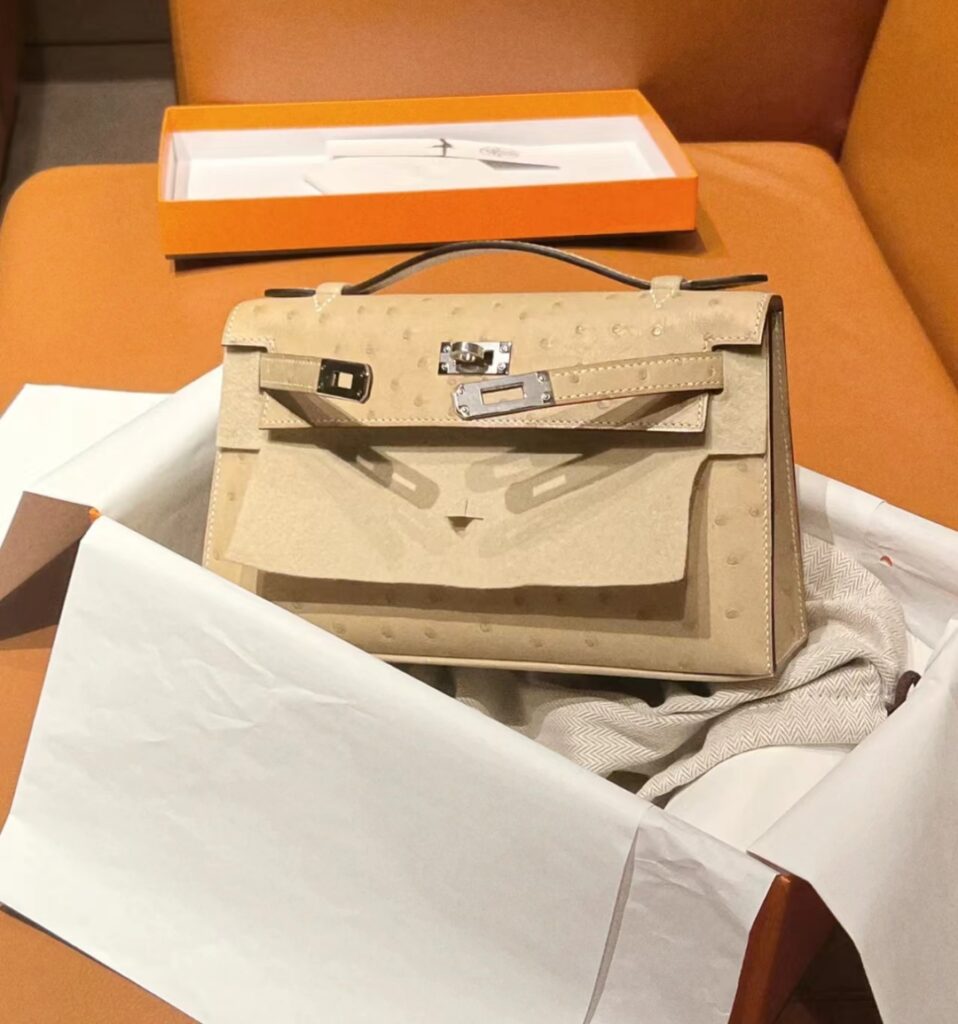 在时尚界的金字塔顶端,爱马仕的稀有皮系列始终占据着无可撼动的地位。而在众多稀有皮质中,鸵鸟皮 (Ostrich Leather) 以其极高的辨识度、轻盈的质感以及卓越的耐用性,成为了资深藏家的首选。今天我们重点介绍的这款 Hermès Kelly Pochette,正是将这种奢华材质与极致手工艺完美结合的典范之作。