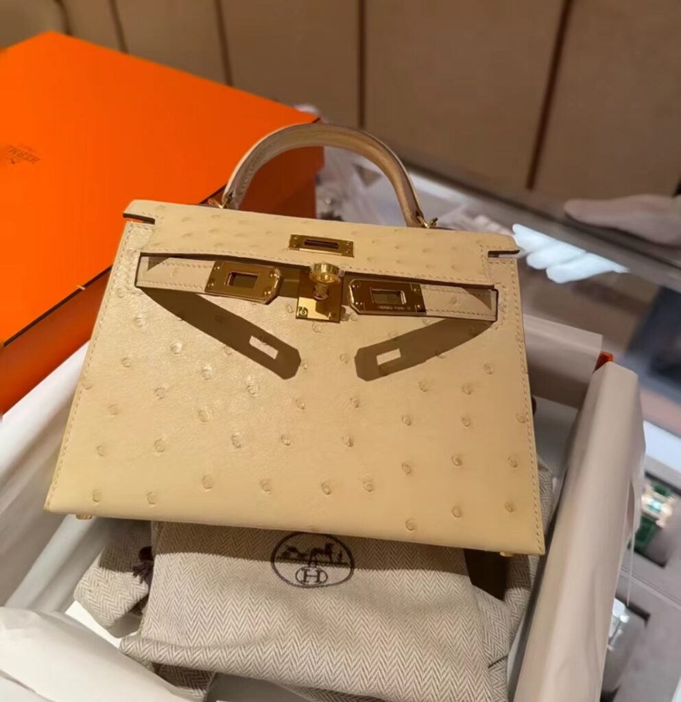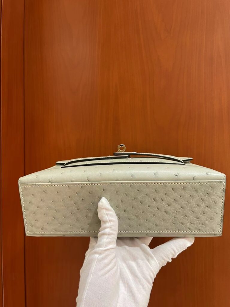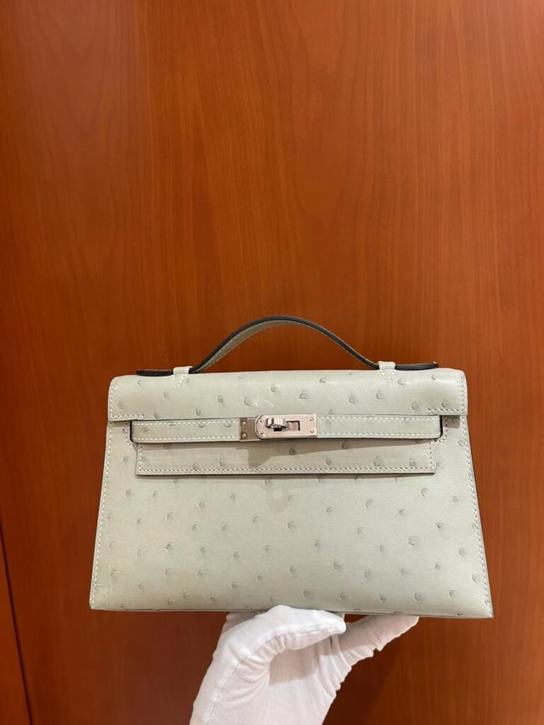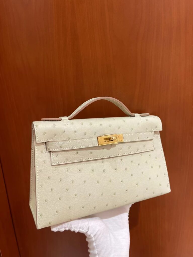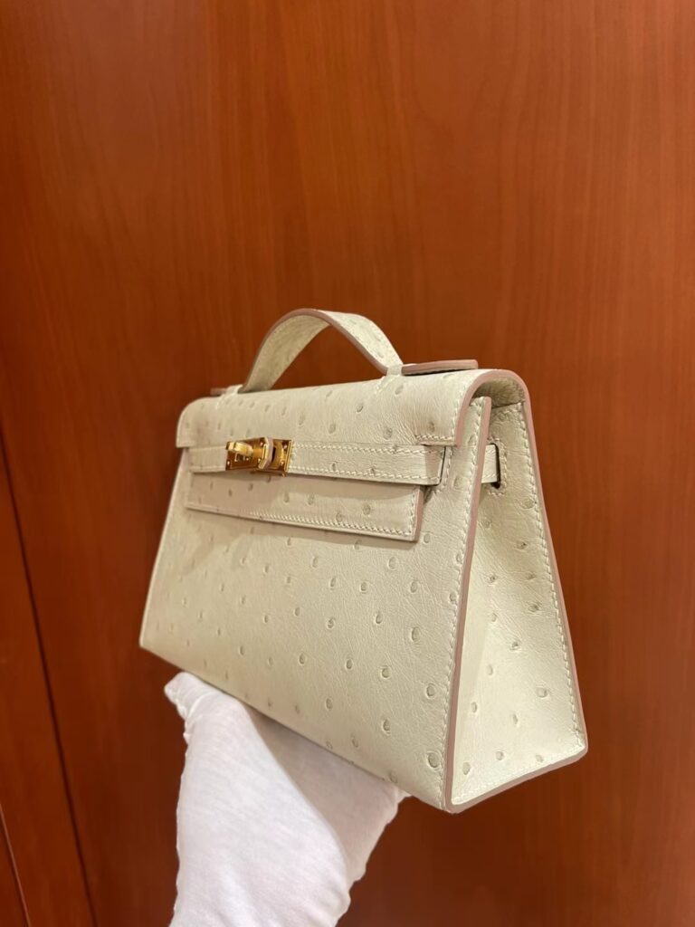 在时尚界的金字塔顶端,爱马仕的稀有皮系列始终占据着无可撼动的地位。而在众多稀有皮质中,鸵鸟皮 (Ostrich Leather) 以其极高的辨识度、轻盈的质感以及卓越的耐用性,成为了资深藏家的首选。今天我们重点介绍的这款 Hermès Kelly Pochette,正是将这种奢华材质与极致手工艺完美结合的典范之作。