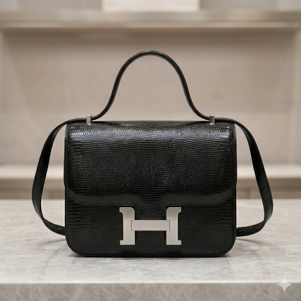在奢侈品包袋的巅峰殿堂中,爱马仕(Hermès)的Constance康康包始终占据着不可撼动的地位。如果说Birkin和Kelly代表了品牌的大气与优雅,那么Constance则象征着极致的自由与现代感。今天,我们要带大家领略的是一款站在Constance系列金字塔顶端的作品——一级黑曜石蜥蜴皮 Constance 18。