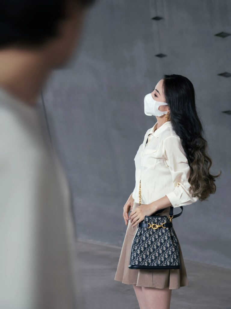 上身效果和结论: 结合参考图片中的真人佩戴效果,我们可以看到这款包的小巧和多功能性。它适合休闲和优雅的各种场合,无论是搭配衬衫和裙子,还是牛仔裤和T恤,都能展现出时尚感。总体而言,这款极致复刻的迪奥 C’est Dior 水桶包在外观、材质和工艺上都达到了极高的水平,是一个完美的替代品。