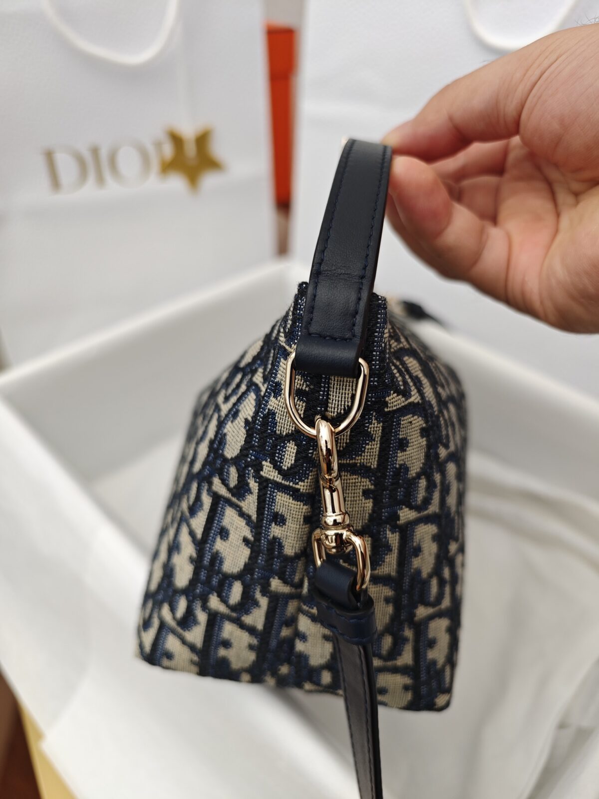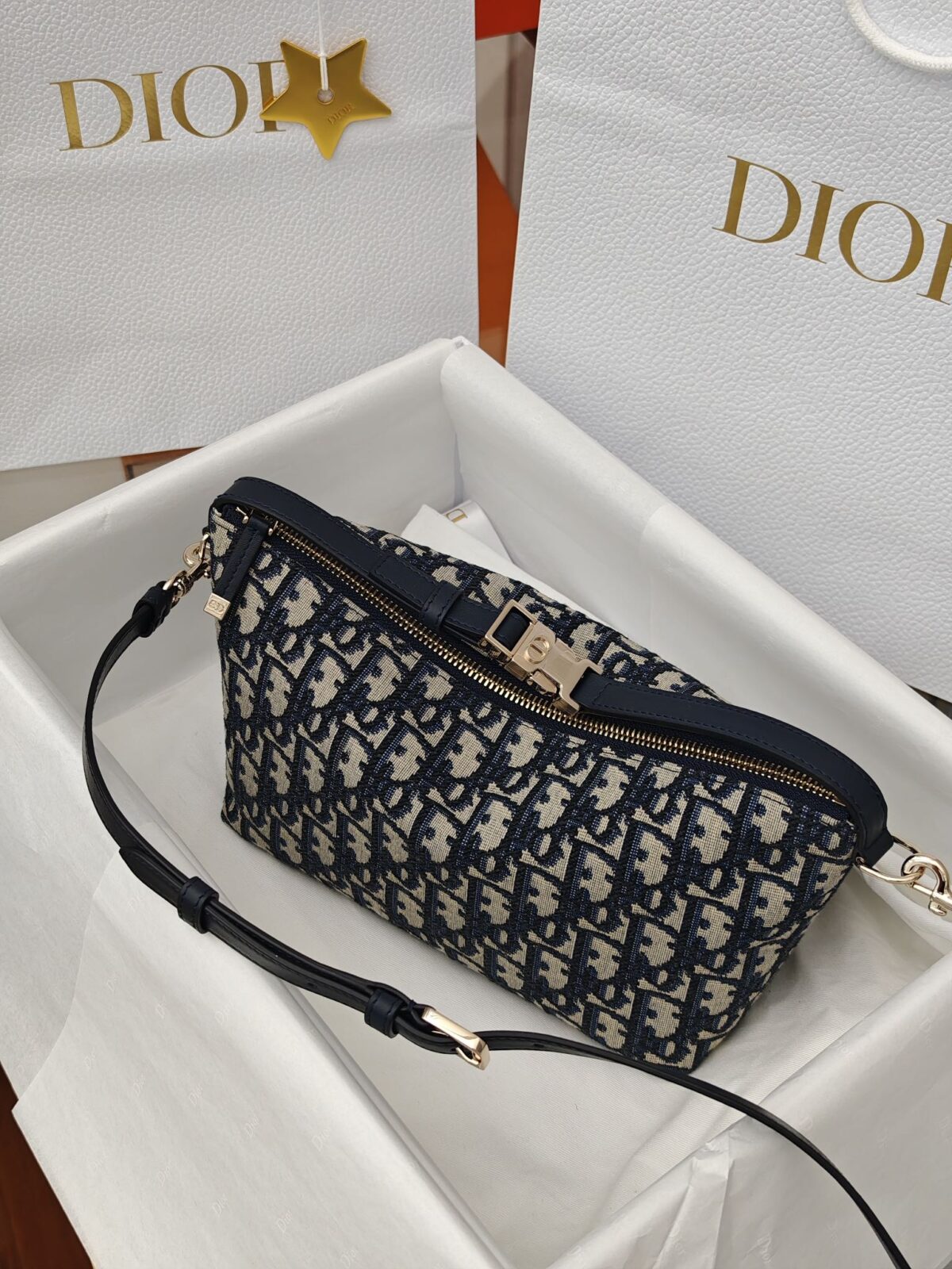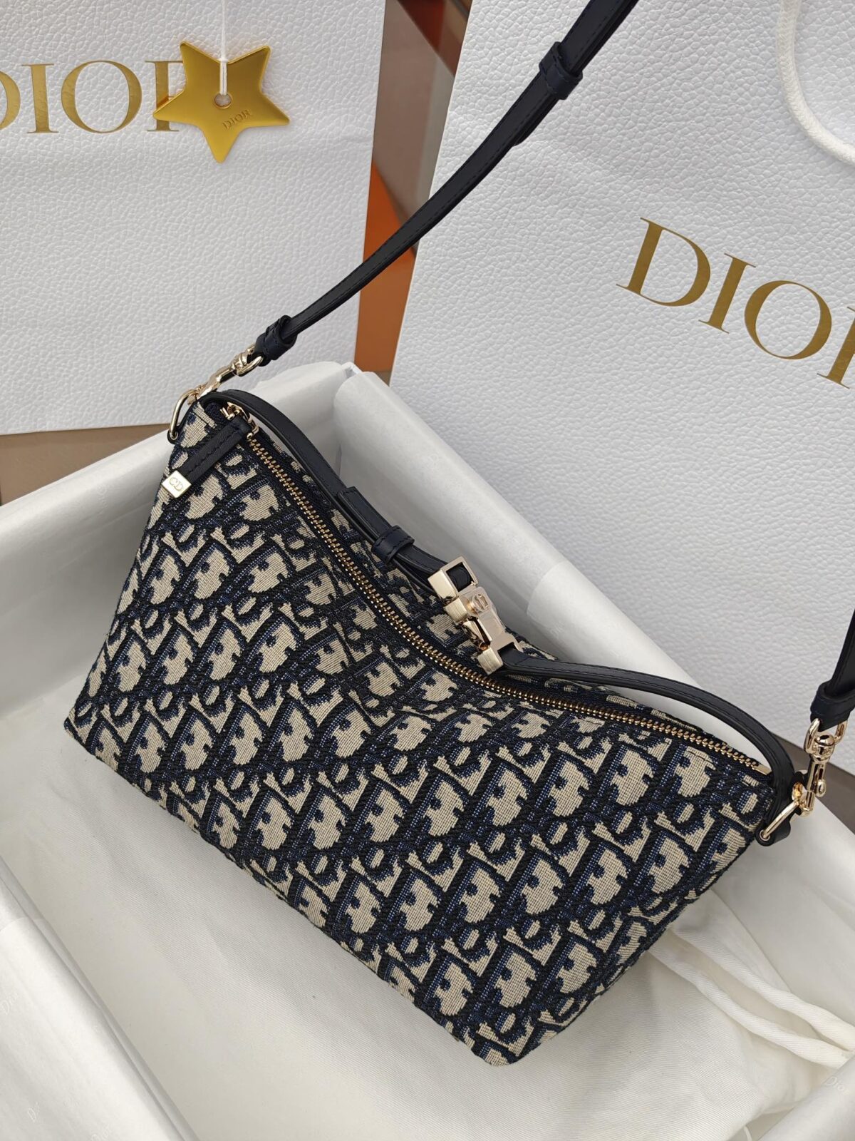 高定包装:仪式感的最后一环 为了追求极致的消费体验,我们为其配备了与柜台同步的独家高定包装。除了精致的防尘袋和礼盒,还特别配有标志性的“五角星”挂件。从你打开包装的那一刻起,那种从视觉到触觉的品质感,将彻底颠覆你对“复刻”的认知。这不仅仅是一件商品,更是对 Dior 优雅生活方式的一场致敬。