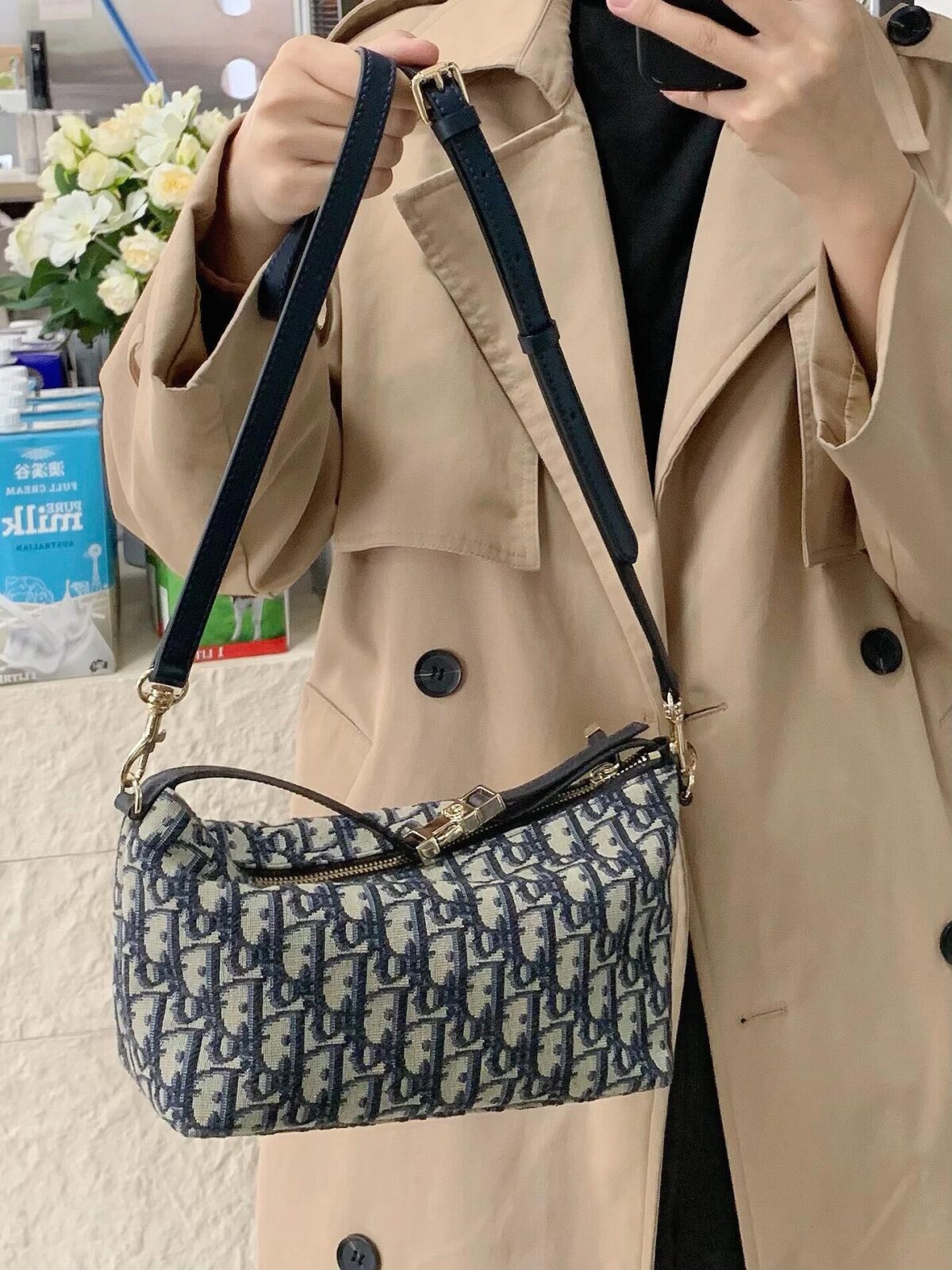 搭配多样性:从手提到斜挎 这款 Nomad 并不局限于一种背法。包身两侧特意预留了金属圆环,这不仅仅是装饰,更是为了兼容 Dior 全系列的刺绣宽肩带。如果你觉得手提过于精致,只需加上一条长肩带,它就能瞬间变成动感十足的斜挎包。无论是搭配简约的白衬衫牛仔裤,还是优雅的长裙,它都能完美融入。