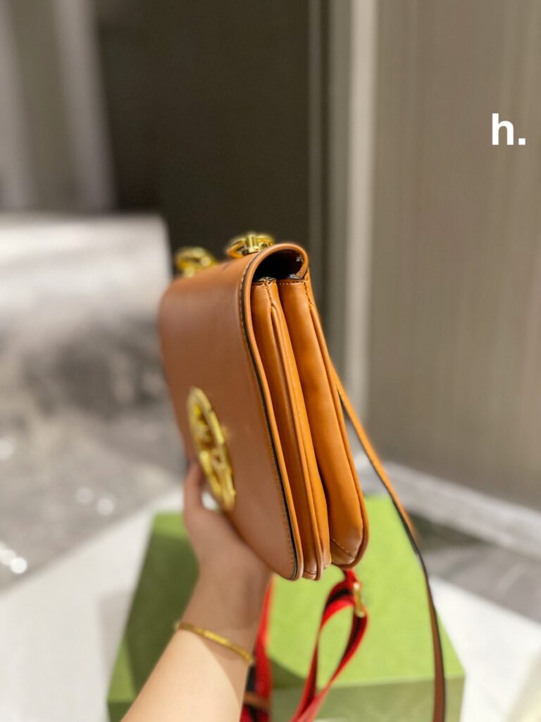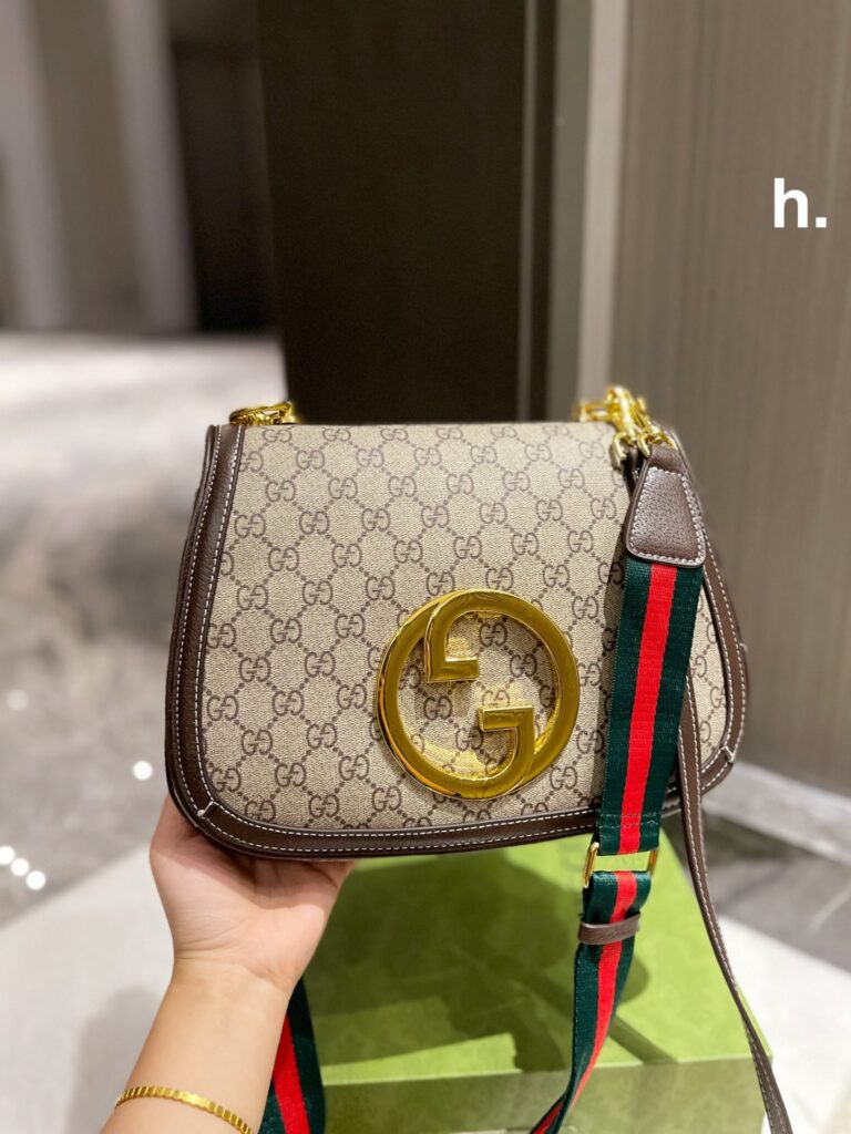 深度解析:复刻美学与精湛工艺的巅峰之作 在奢侈品包袋的世界里,Gucci Blondie 系列无疑是近年来的“常青树”。这款包的设计灵感源自古驰 1970 年代的典藏档案,其最核心的视觉符号便是那硕大的圆形互扣式双 G 金属标识。在我们为您呈现的这款顶级复刻版本中,这一金属 Logo 经过了数十次开模调整,确保其弧度、厚度以及浅金色的色调与专柜正品完全一致,呈现出一种高级的哑光缎面感,而非廉价的刺眼光泽。