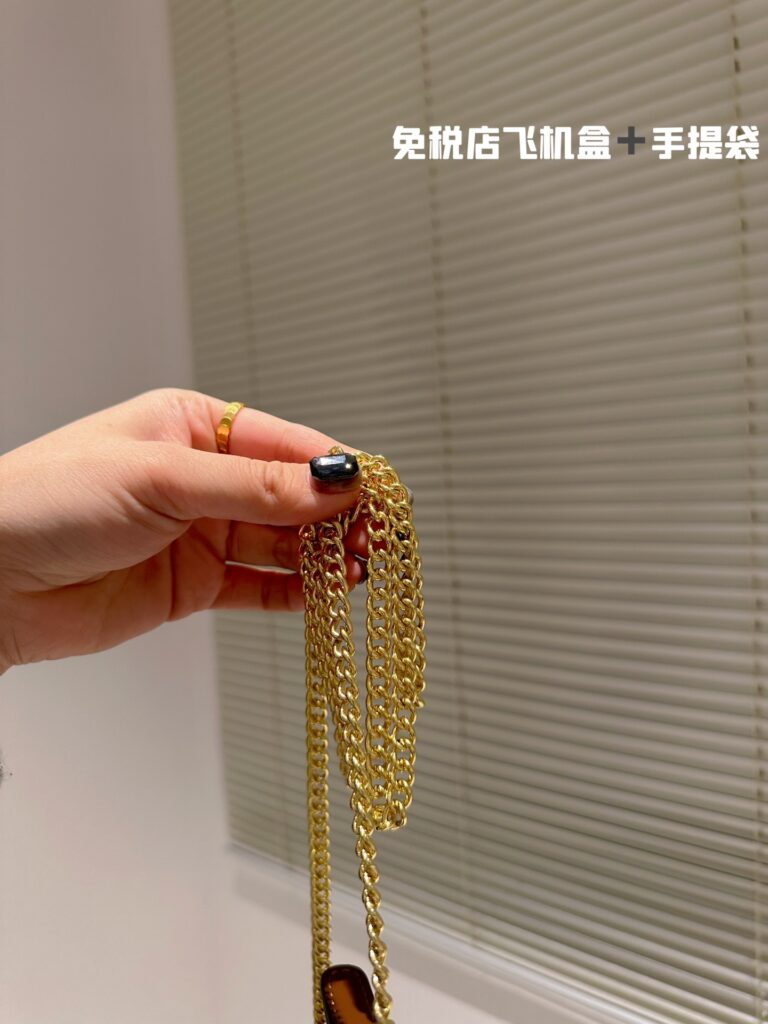 目光移至包袋的正面,点缀着标志性的复古互扣式双G珐琅与皮质叠加的椭圆形徽标,这不仅是尊贵品牌身份的象征,更起到了画龙点睛的美学作用。我们在这款包的五金配件上同样倾注了极致的心血,所有金属部件均采用高成本的多层真空电镀工艺,呈现出一种高级且醇厚的复古黄铜金色泽。这种五金不仅在日常使用中极为耐磨、抗氧化,更能在不同的光线折射下散发出迷人且奢华的光晕。无论是拉链开合时的极致顺滑度,还是那条金属链条肩带所带来的极佳垂坠感与冰凉触感,都能让您在每一次背负中感受到超越价格的极致奢华体验。