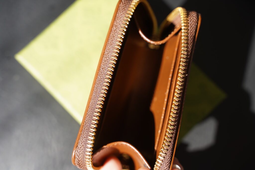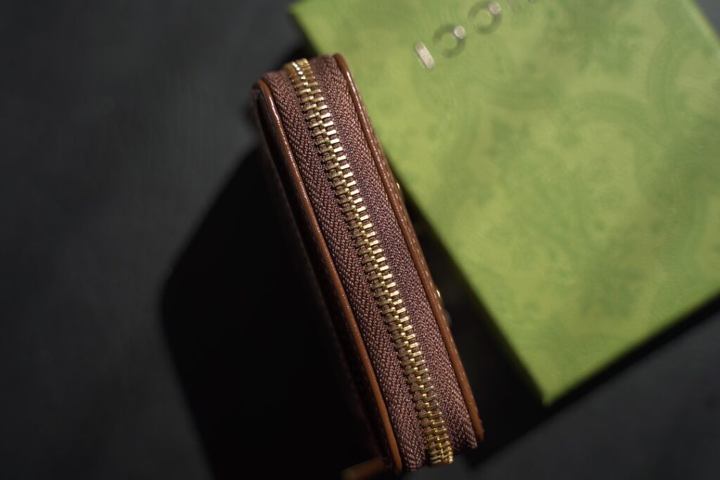 产品参数: 这款包包在颜色上采用了经典的乌木色/米色GG Supreme帆布搭配深棕色皮革滚边,整体风格复古且极具品牌辨识度。其具体尺寸为 11.5 x 8.5 x 3 厘米,属于精致小巧且实用的拉链卡包/短款钱夹。材质方面,整包采用了百分之百进口原厂皮料与GG Supreme涂层帆布,并使用了昂贵的德国进口大牌专用Gutermann(顾特满)缝线。五金件则选用了高品质的金色马衔扣(Horsebit)装饰,配备流畅的金属拉链开合。