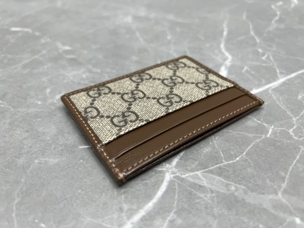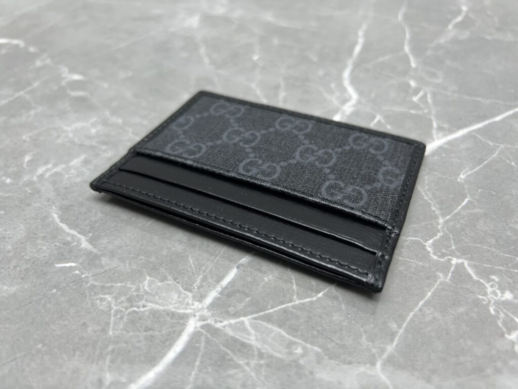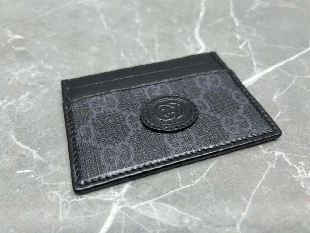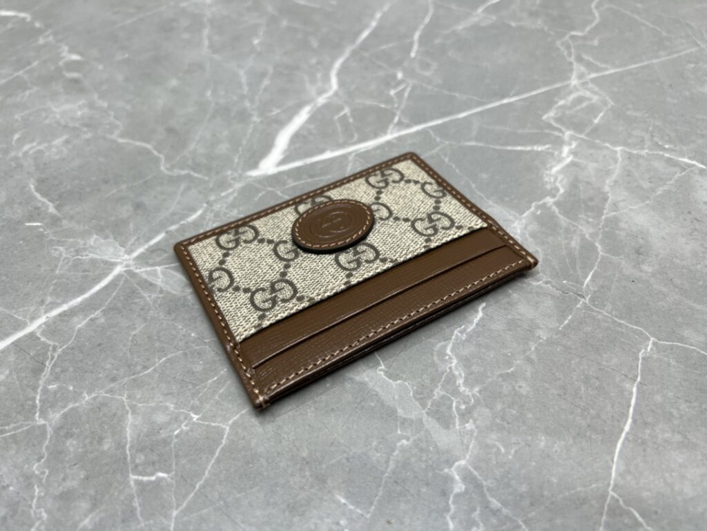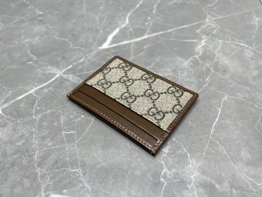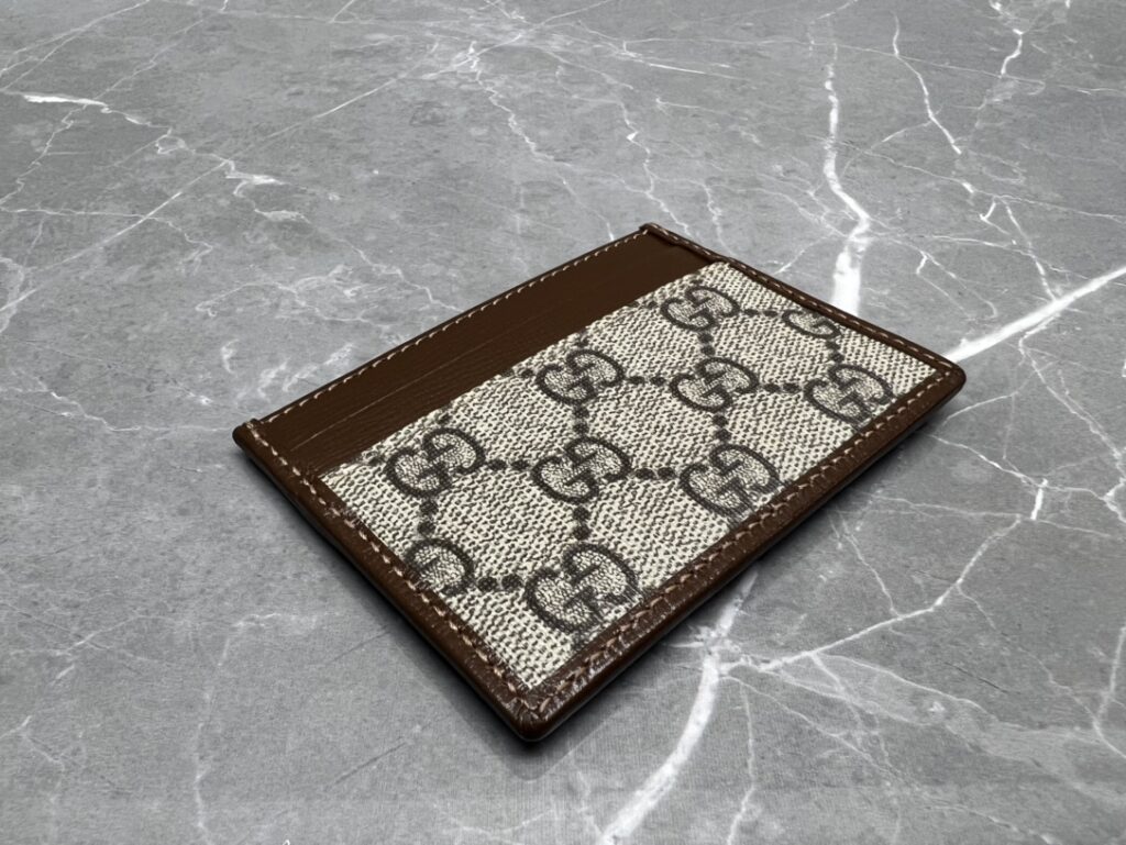 1. 材质的极致还原:GG Supreme帆布与原厂皮的碰撞 这款卡包之所以能在众多版本中脱颖而出,核心在于其选用的材质。我们采用了标志性的GG Supreme高级人造帆布,这种材质不仅手感干爽、纹理清晰,更具备卓越的耐磨与防水性能。经典的乌木色版本还原了那种沉稳的复古滤镜感,而黑灰色版本则更具现代都市的冷冽与高级。与之匹配的“原厂皮”包边,手感细腻且富有韧性,随着使用时间的增长,皮革会呈现出更加迷人的光泽感。