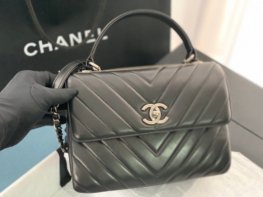 这款畅销的 Chanel “Sandwich” 包(型号 92236)的变体设计,将经典的菱格纹替换为充满动感的 Chevron(V 形纹)图案。V 形缝线勾勒出流畅顺滑的线条,在视觉上拉长了包身的轮廓,为这一经典包型增添了几分现代感与几何美学色彩。