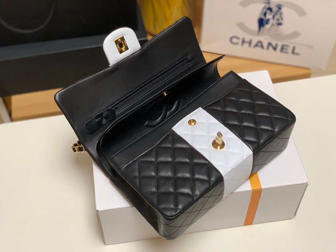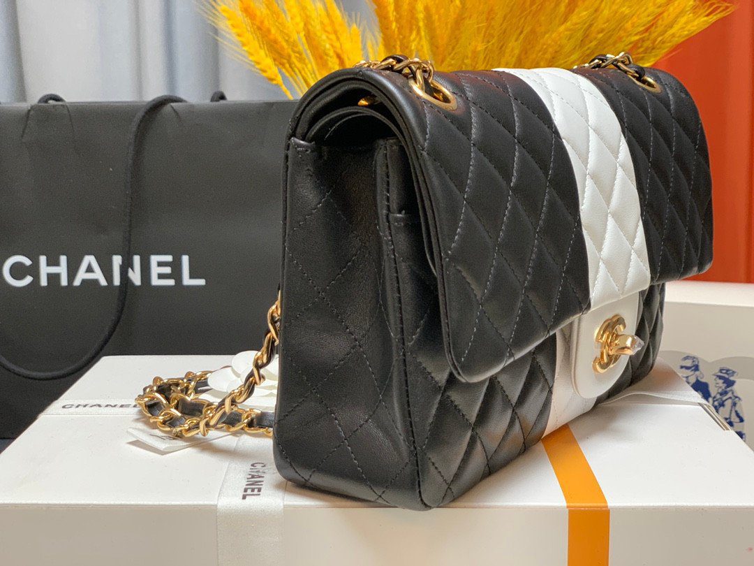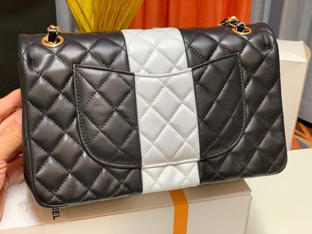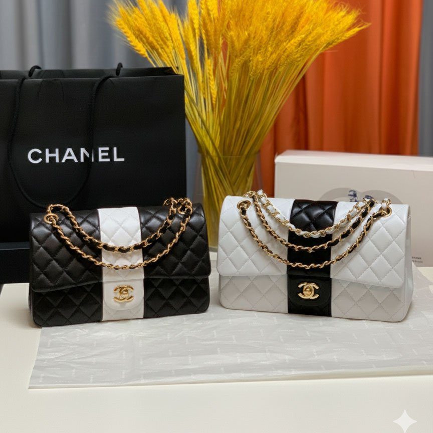这款2022年新品将助您打造令人瞩目的时尚宣言,它是对传奇之作——香奈儿 Classic Flap(型号 1112)的全新演绎。这一限量系列采用了迷人的双色拼接设计,俗称“熊猫款”或“燕尾服款”,其标志性特征是一条醒目的垂直条纹贯穿包身中央,与主体颜色形成了鲜明的视觉对比。