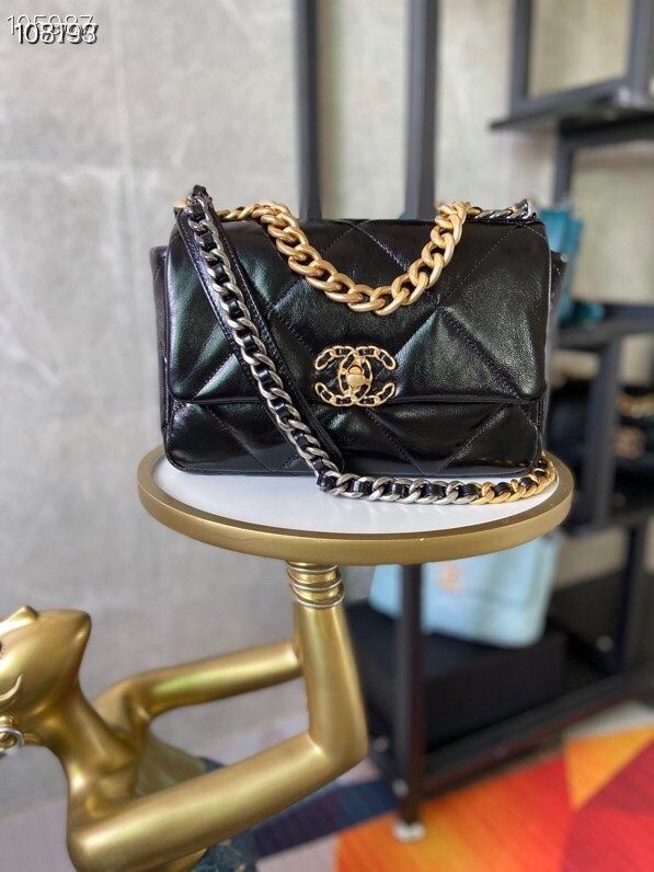 对备受追捧的 Chanel 19 手袋一见倾心吧——这款令人惊艳的杰作最初亮相于 2020 秋冬系列。该特定型号(AS1160)巧妙地将品牌最具辨识度的经典元素融为一体,打造出一款现代风格的典范之作。它最引人注目的特征包括:超大尺寸的菱格纹绗缝、标志性的双 C(Double C)标志,以及粗链条与皮革交织而成的肩带。包身选用触感极其柔软的油蜡皮精制而成,手感舒适宜人;其包型呈现出一种随性慵懒的垂坠感,却又不失无可挑剔的奢华质感。