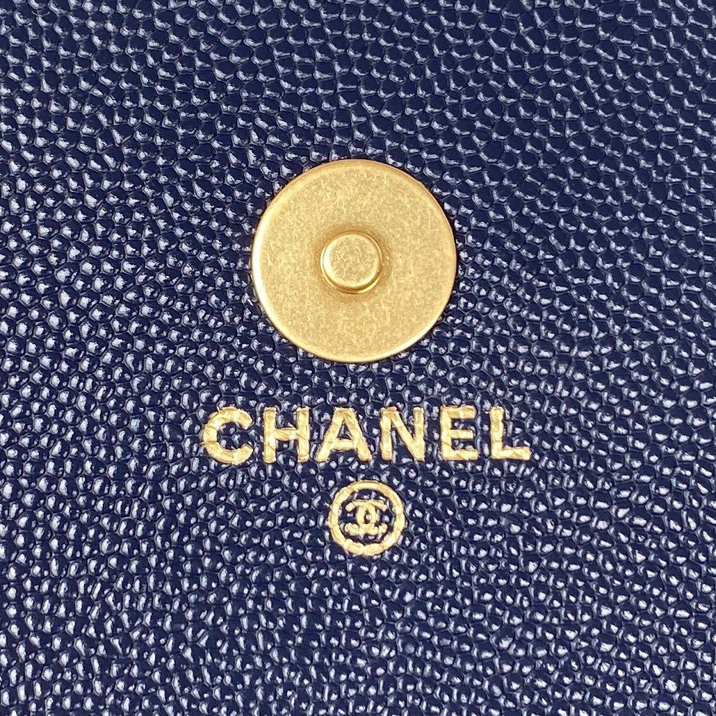 经典细节:外观采用永恒经典的菱格纹设计,正面饰有醒目的金色双C(CC)五金件。
