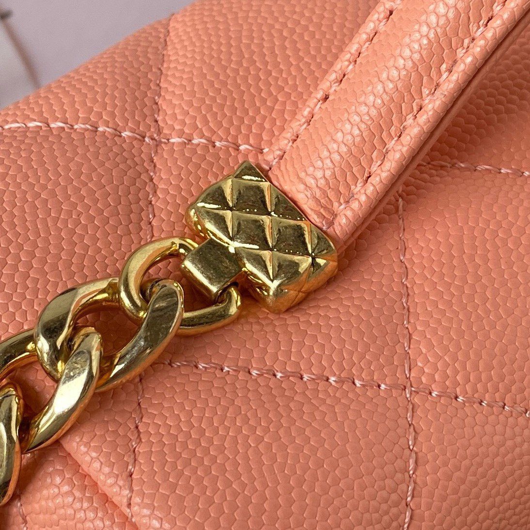 标志性美学:完美呈现经典的菱格纹绗缝图案,并饰有标志性的金色双C五金配件。