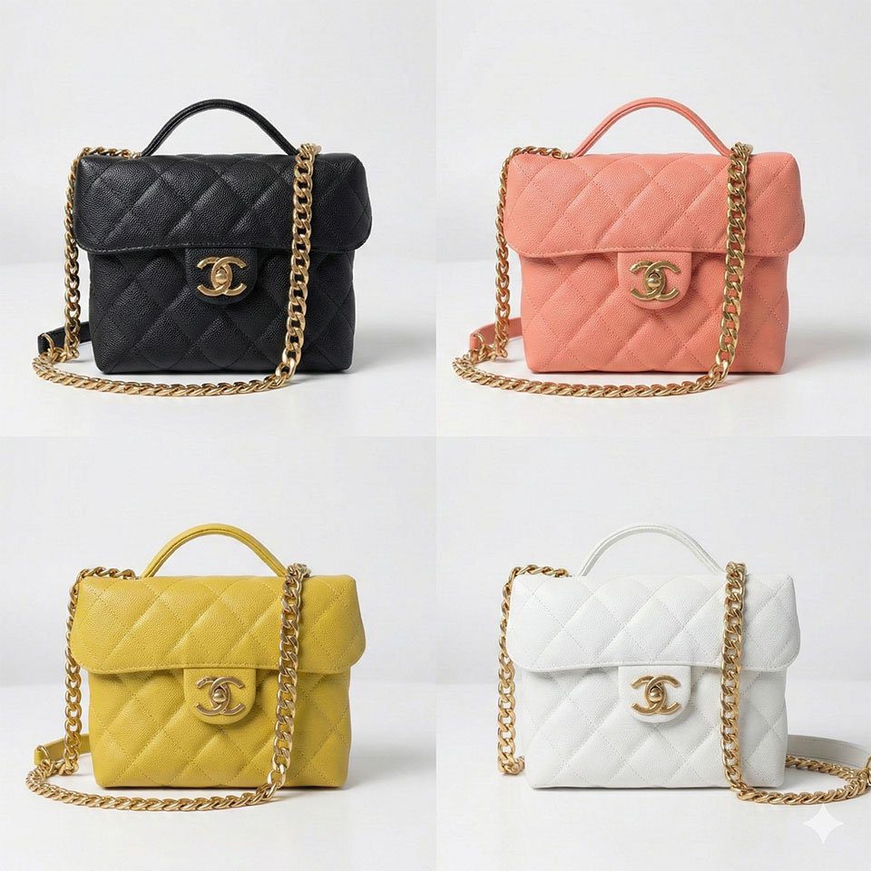 这款永恒经典的“牛奶盒”造型化妆包,助您轻松捕捉备受追捧的复古美学风范。它选用独家原厂 Haas 荔枝纹牛皮(俗称“鱼子酱皮”)精制而成,外观纹理细腻迷人,且坚固耐用。尽管包身外观结构挺括、小巧精致,其内部容量却出人意料地宽敞,不仅能轻松容纳大屏智能手机,还能同时收纳您的日常随身物品。经典香奈儿(Chanel)菱格纹绗缝工艺,搭配翻盖正面醒目的金色双C互扣式搭扣,进一步提升了整体设计的奢华格调。该系列提供一系列引人注目的配色选择,包括经典黑、蜜桃粉、芥末黄以及纯净白。