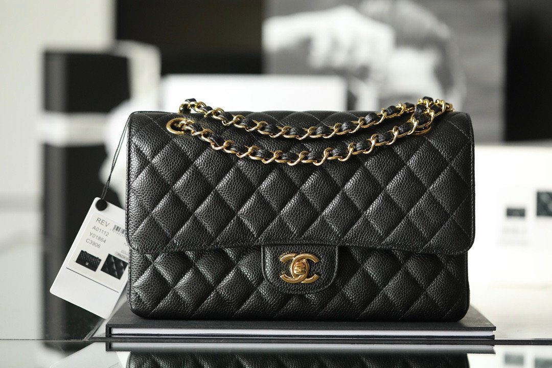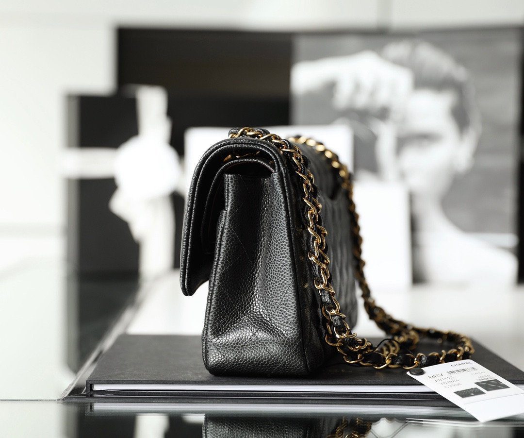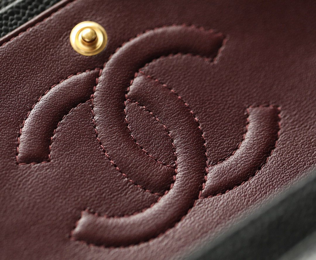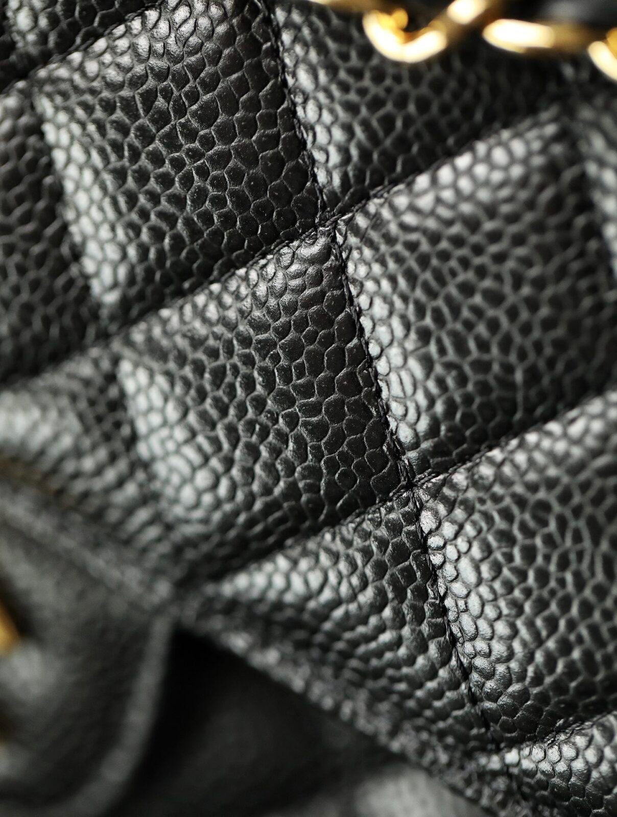 包身采用顶级哈斯鱼子酱牛皮精制而成,呈现出独特的鹅卵石纹理,以其卓越的耐用性和抗刮擦性而闻名。为确保包袋保持完美廓形,内部结构采用意大利进口的高品质海绵和衬垫材料加固。经典的菱格纹设计与厚实的全钢五金配件相得益彰,标志性的双C互扣式旋扣和皮革链条交织肩带均镀有厚重的24K金。打开翻盖,即可看到奢华的原版羊皮内衬,令这款包袋由内而外都散发着精致的收藏价值。