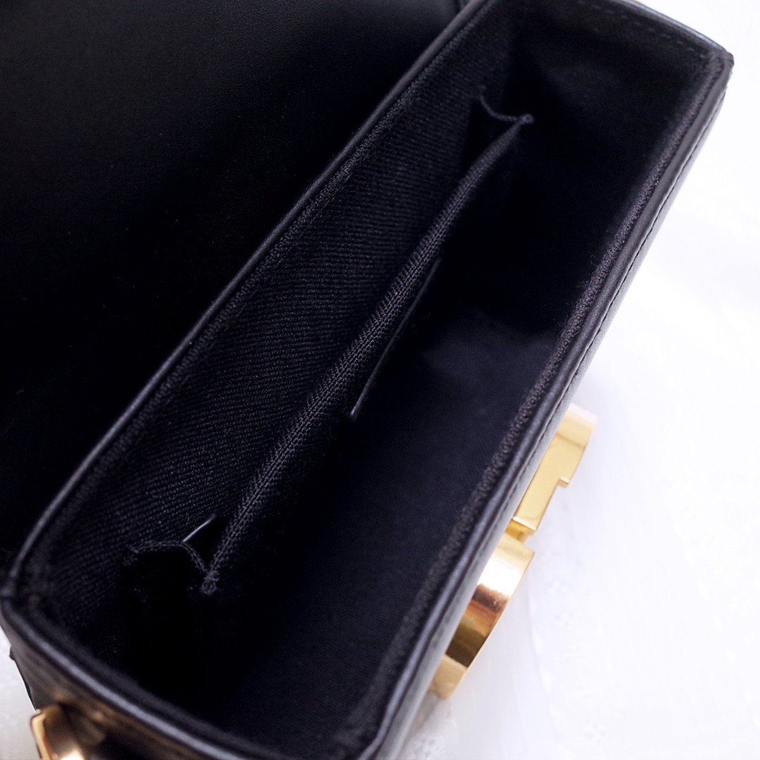 醒目五金:包身正面醒目地饰有一枚硕大且吸睛的金色调金属“CD”标志搭扣。