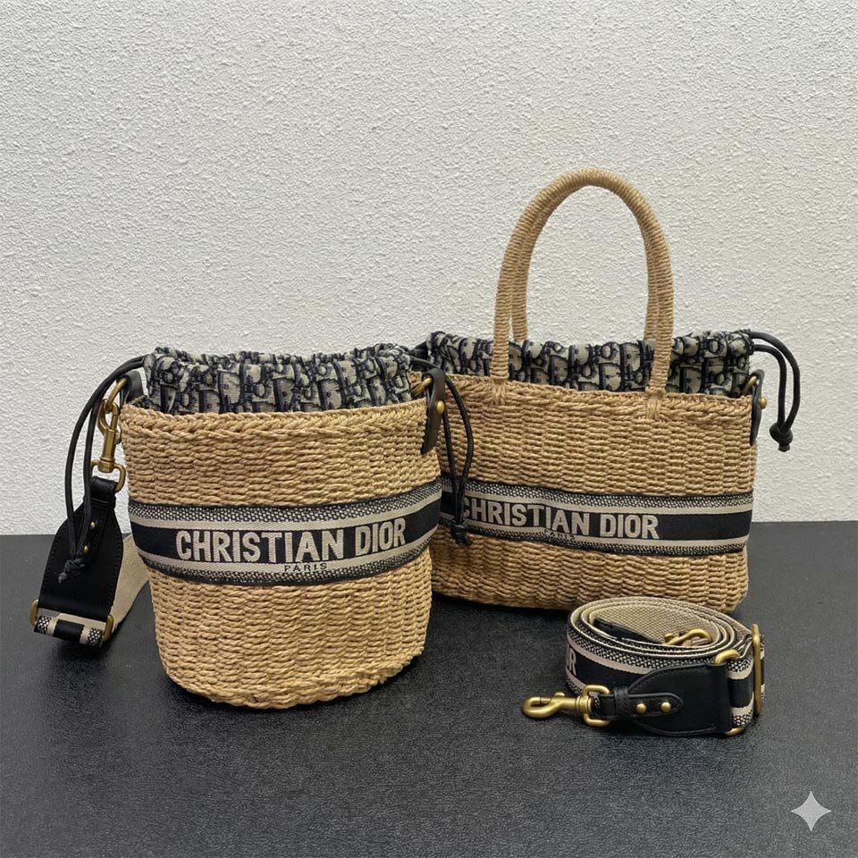 迪奥 (Dior) 备受追捧的藤编手袋系列,完美诠释了春夏的极致美学。这些手袋由天然藤条精心手工编织而成,散发着优雅的匠心魅力,其设计灵感源自品牌标志性的 Book Tote 手袋。