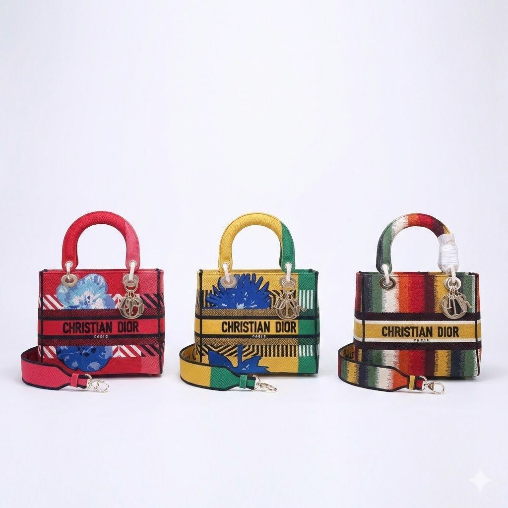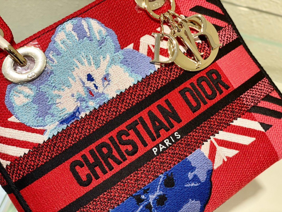 Lady D-Lite 手袋巧妙融合了品牌经典的优雅格调与极具现代感的前卫美学。这款迷人的中号手袋通体采用刺绣工艺,生动呈现了色彩斑斓的 D-Flower Pop 图案,并辅以醒目的条纹变奏设计,完美彰显了该系列的缤纷活力与动感风范。