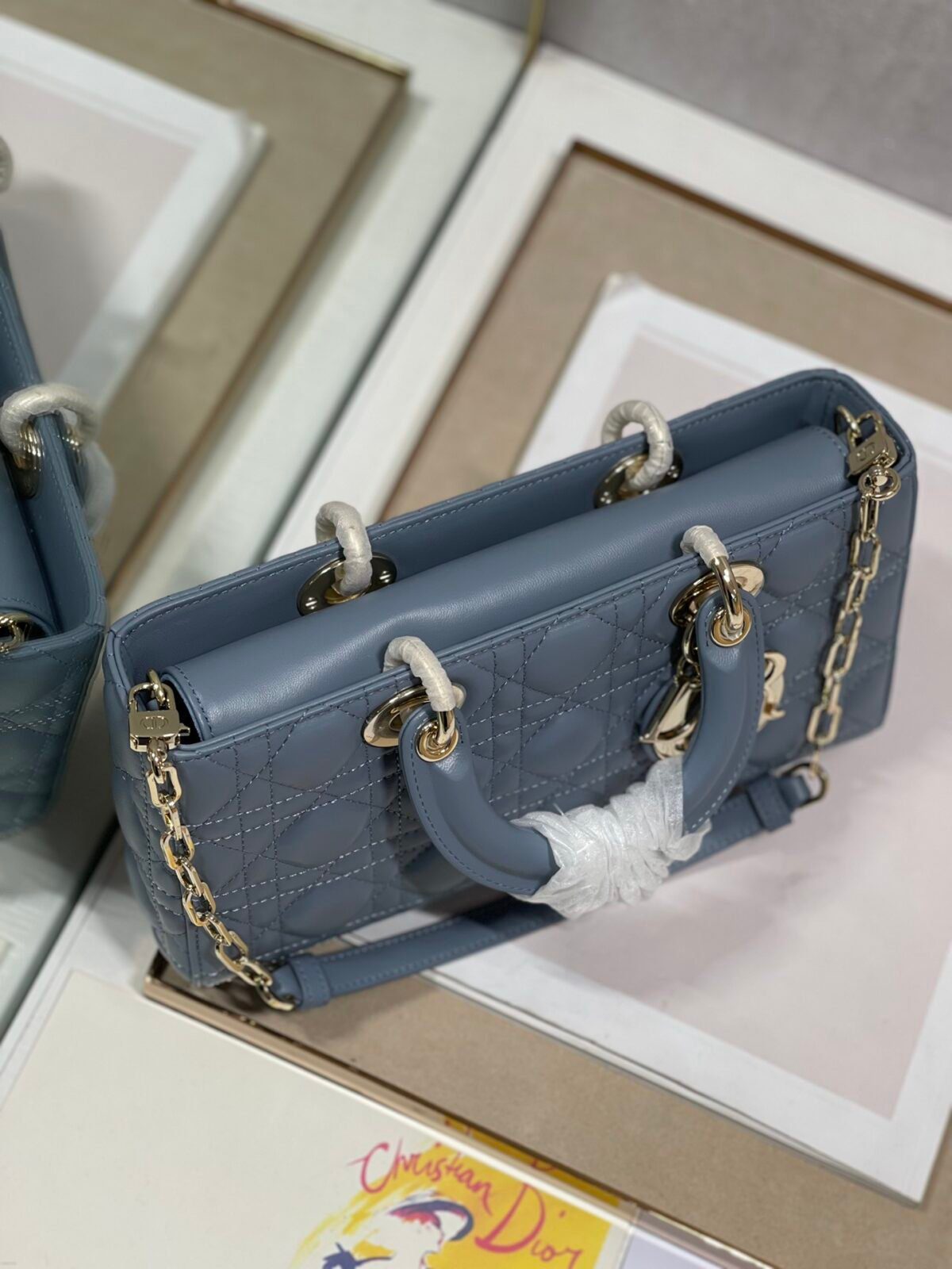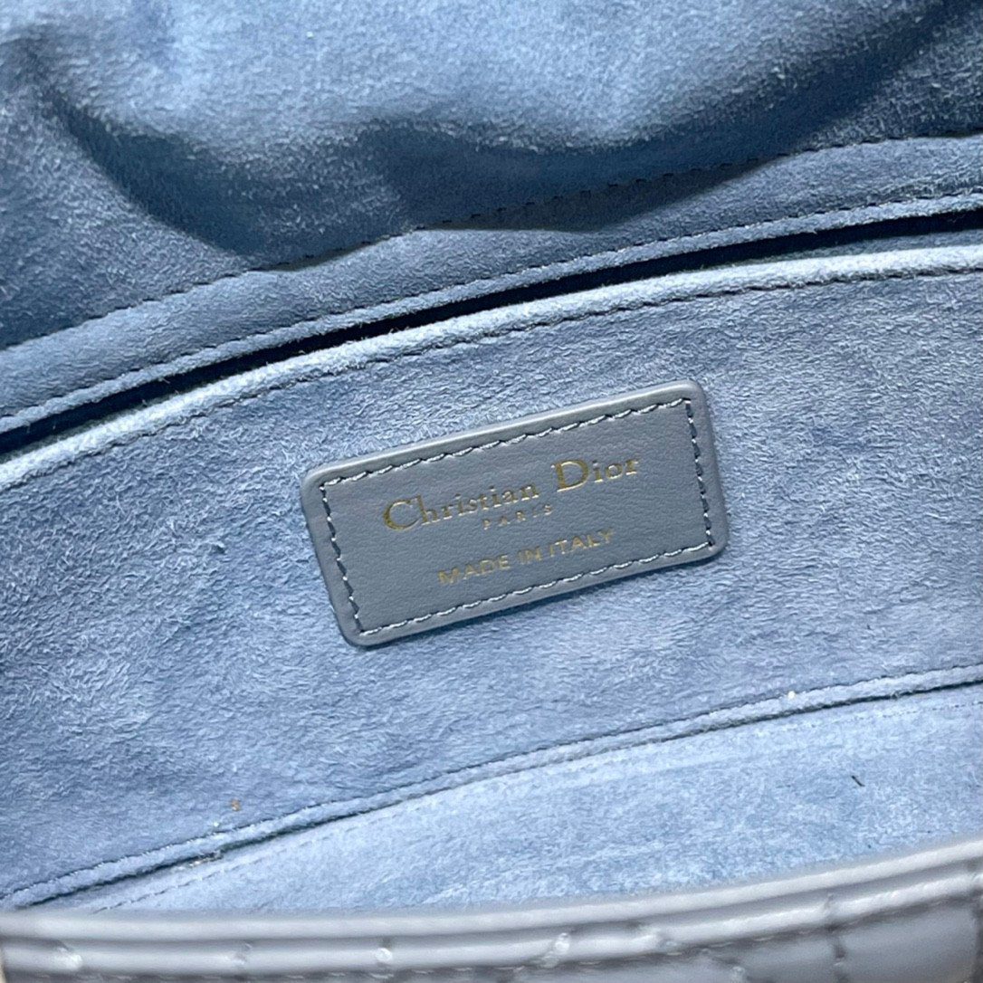 这款手袋选用柔软的羊皮(小羊皮)精心打造,饰有传奇般的菱格纹(Cannage)缝线,呈现出一种既精致又经典的永恒质感。包身的建筑感线条因点缀其上的淡金色金属“D.I.O.R.”字母吊坠而愈发迷人,这些吊坠随着步履轻盈摇曳,为整体廓形增添了一抹灵动的优雅。