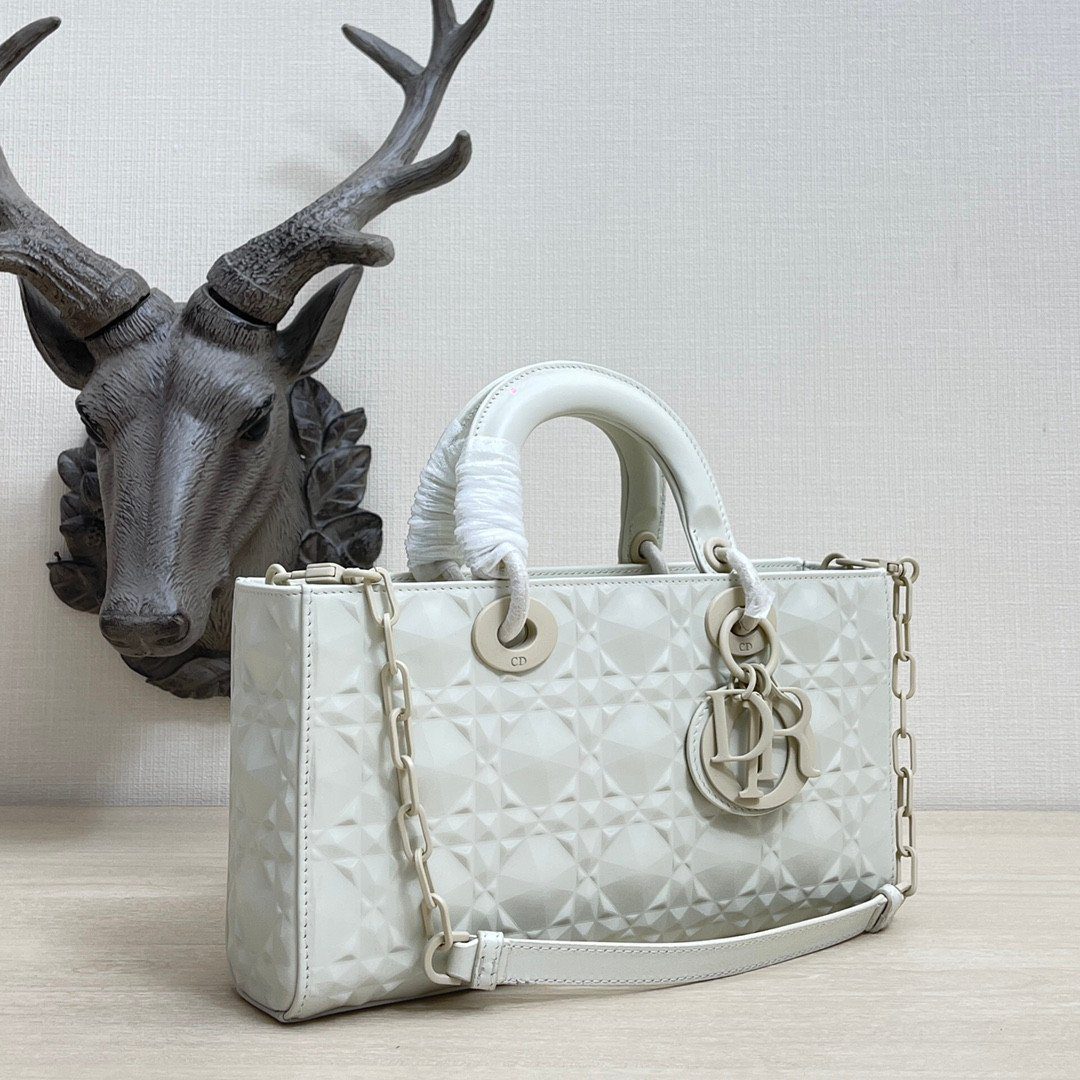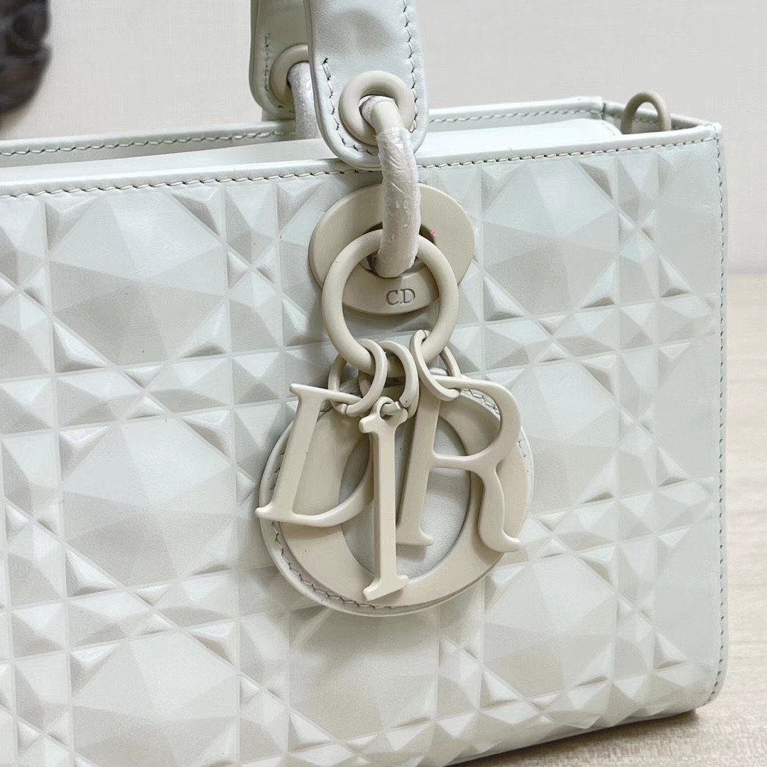 作为现代奢华的典范,这款手袋配备了一整套哑光/磨砂质感的五金配件。标志性的“D.I.O.R.”字母吊坠、链条环节以及金属孔眼均采用与皮革相同的哑光色调处理,营造出浑然一体的精致外观,被誉为 Lady 系列的“巅峰之作”。