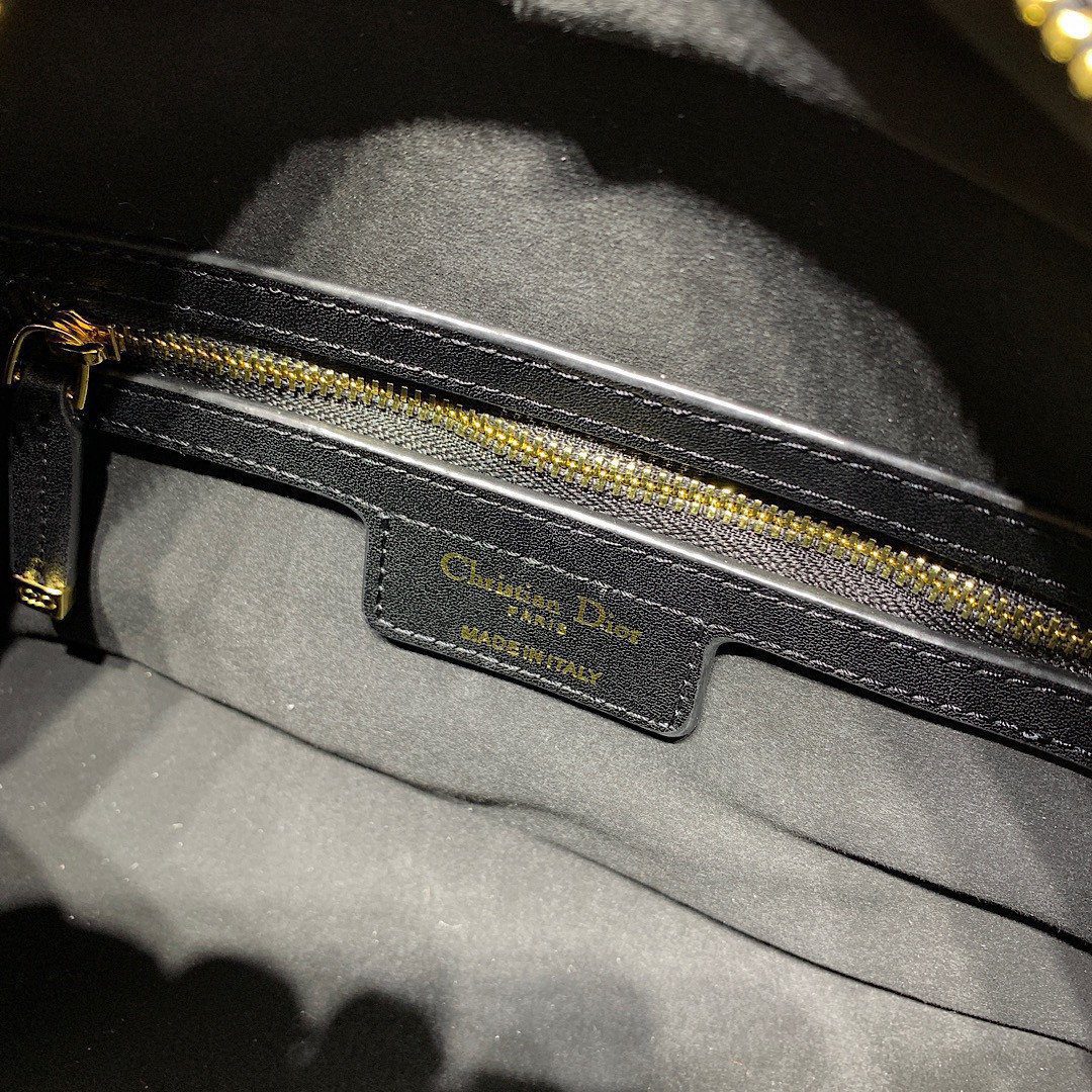 这款手袋选用光滑小牛皮精制而成,表面呈现出精致考究的压花纹理(型号 9109 压花款)。其设计亮点在于正面拉链口袋上醒目且对比强烈的“CHRISTIAN DIOR PARIS”品牌标识,以此彰显出强烈的品牌个性与身份。