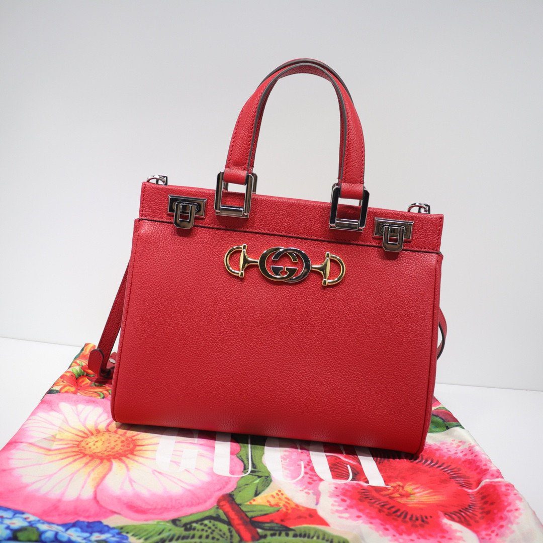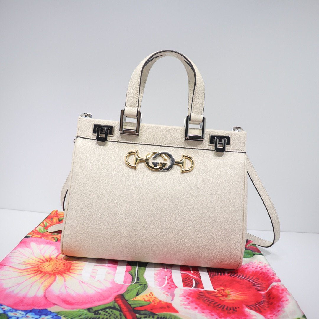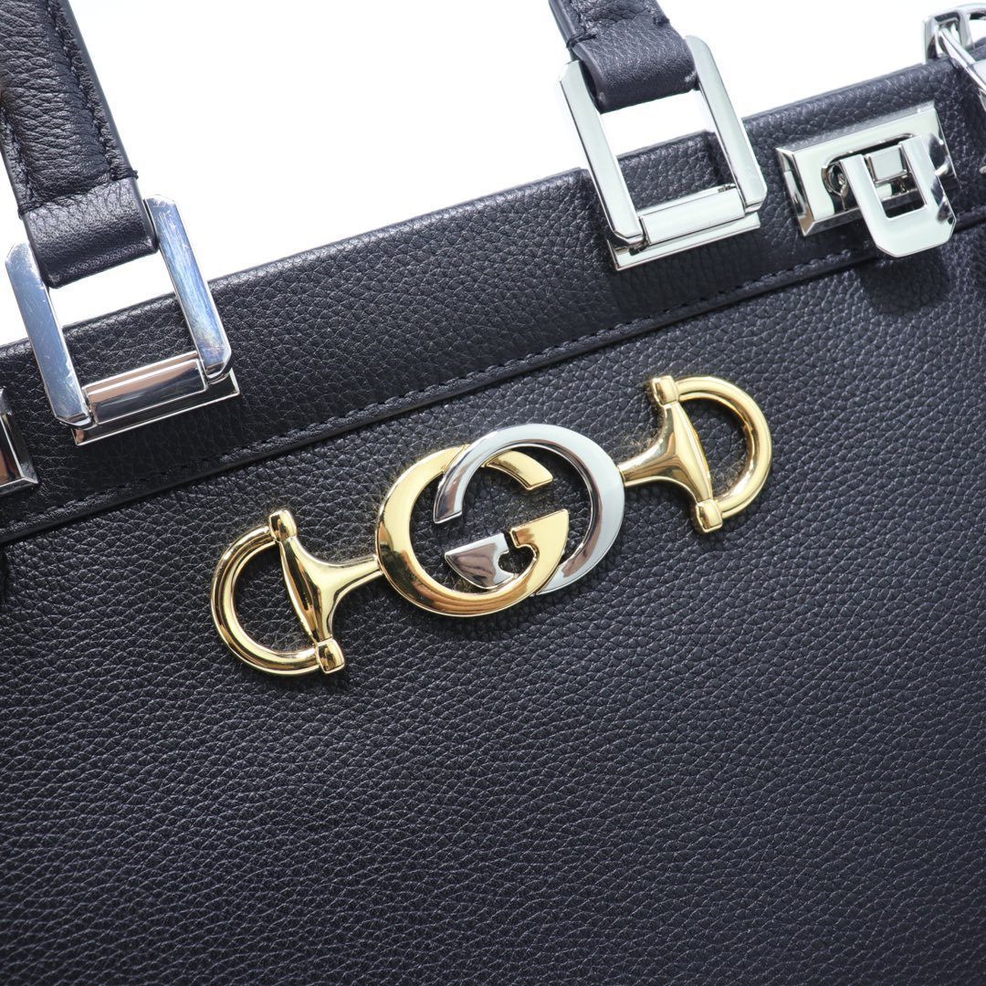 古驰 Zumi 手提包 27厘米 颗粒状 皮革 双G马衔扣 (小号)