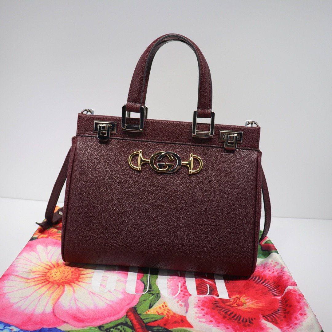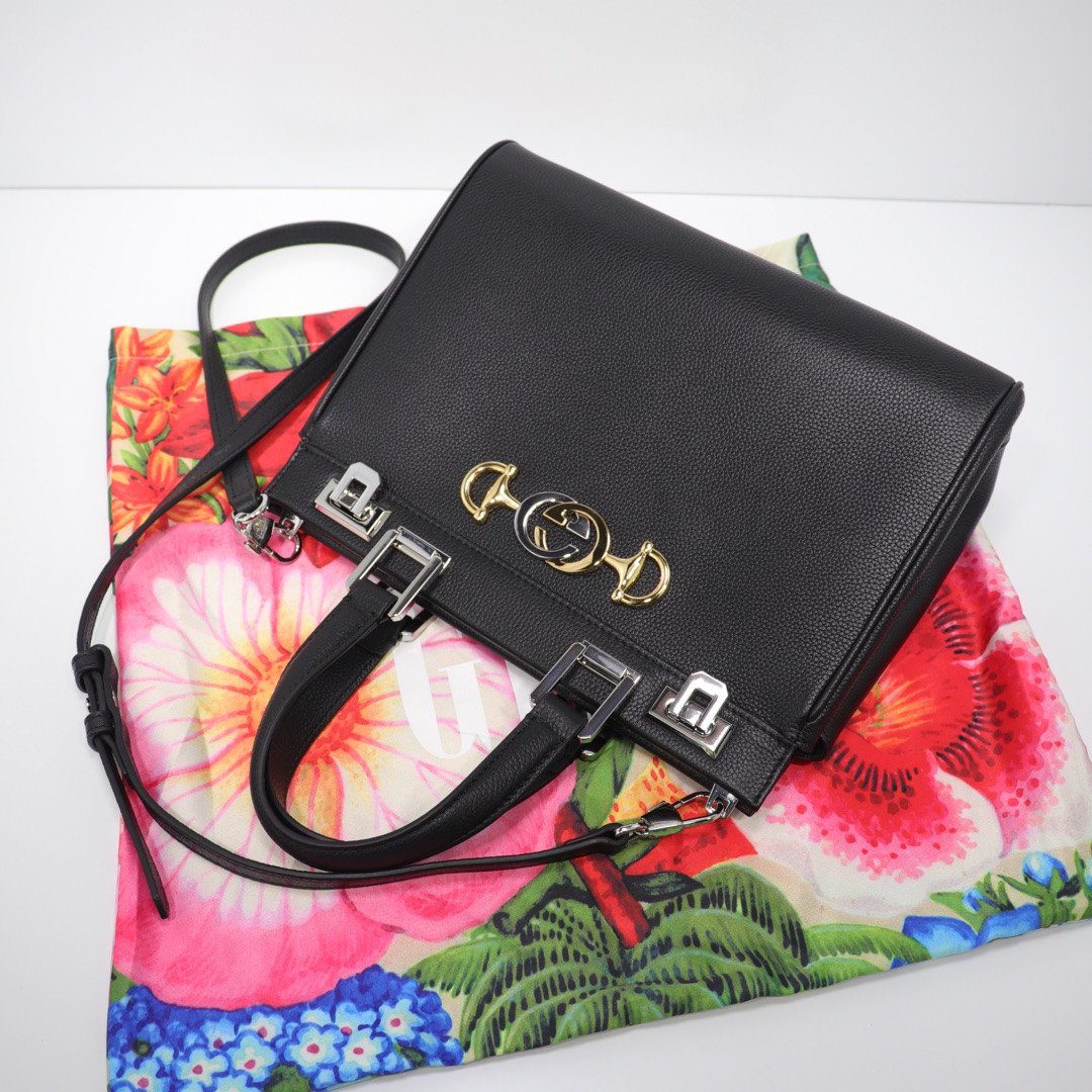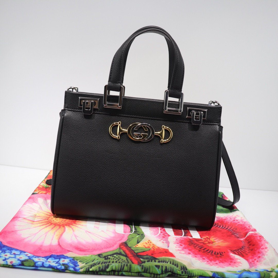 古驰 Zumi 手提包 27厘米 颗粒状 皮革 双G马衔扣 (小号)