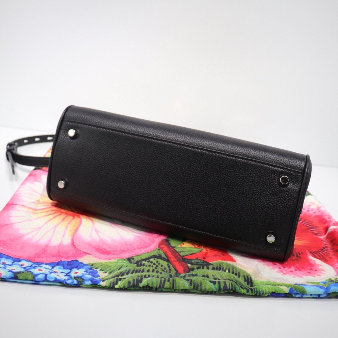 这款包袋严格遵循“精品店品质”与“顶级水准”的标准打造,采用精美的荔枝纹皮革(粒面小牛皮)制成,呈现出既耐用又极具质感的优雅外观。奢华体验亦延伸至包袋内部,内衬选用触感柔滑的优质绵羊皮,带来极致细腻的触觉享受。