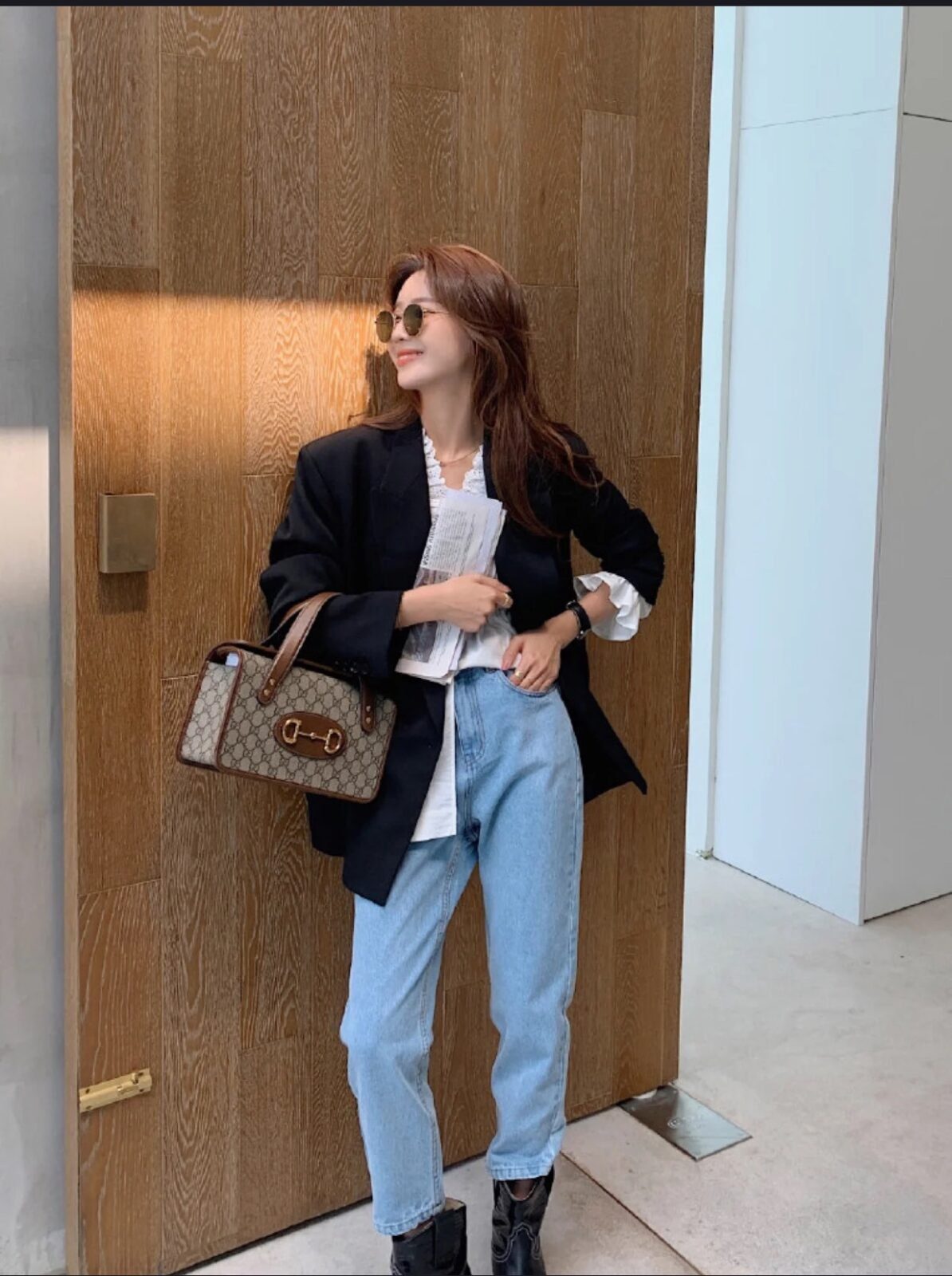 这款手袋最具辨识度的焦点,莫过于正面皮革饰片上那枚引人注目的金色马衔扣(Horsebit)五金件。这一细节不仅突显了手袋的独特魅力,更作为品牌标志性的璀璨元素,令人过目难忘。