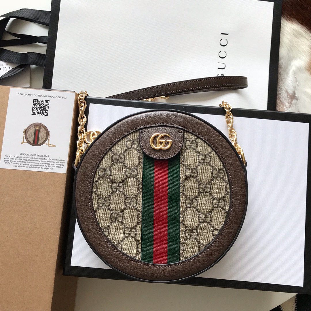 Gucci Ophidia 迷你圆形单肩包是一款引人注目的杰作,完美诠释了 Ophidia 系列所独有的复古优雅格调。作为本季的重点推荐单品,其精致小巧的圆形轮廓使其成为一款真正吸睛的时尚配饰。