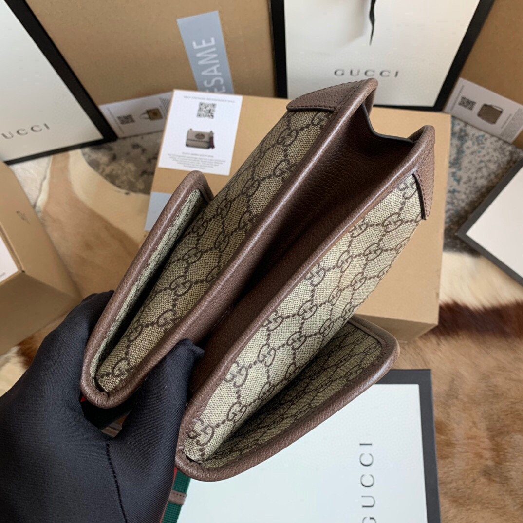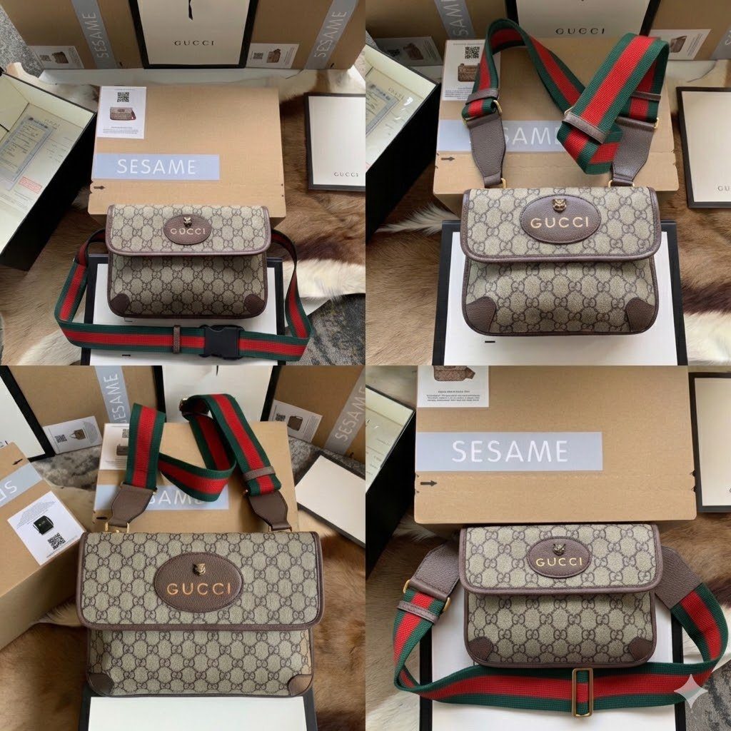 包袋配有一条宽厚且可调节的经典红绿织带肩带,并搭配坚固耐用的金属搭扣。您可以将其舒适地斜挎在身上作为信使包使用,也可以稳妥地系于腰间或胸前,打造出多种风格的造型。为了给您提供完整的精品购物体验,本商品随附原厂包装。