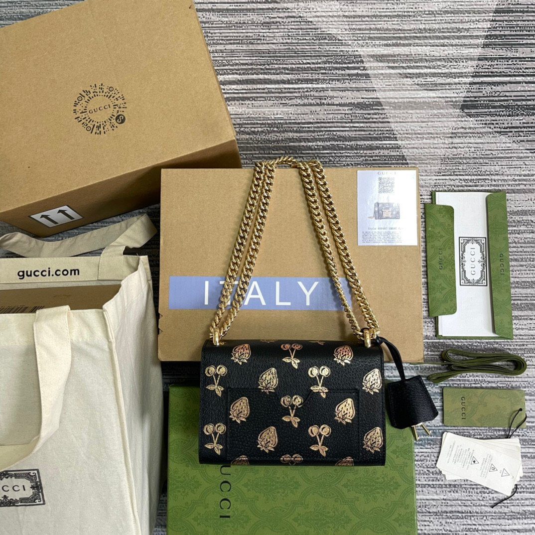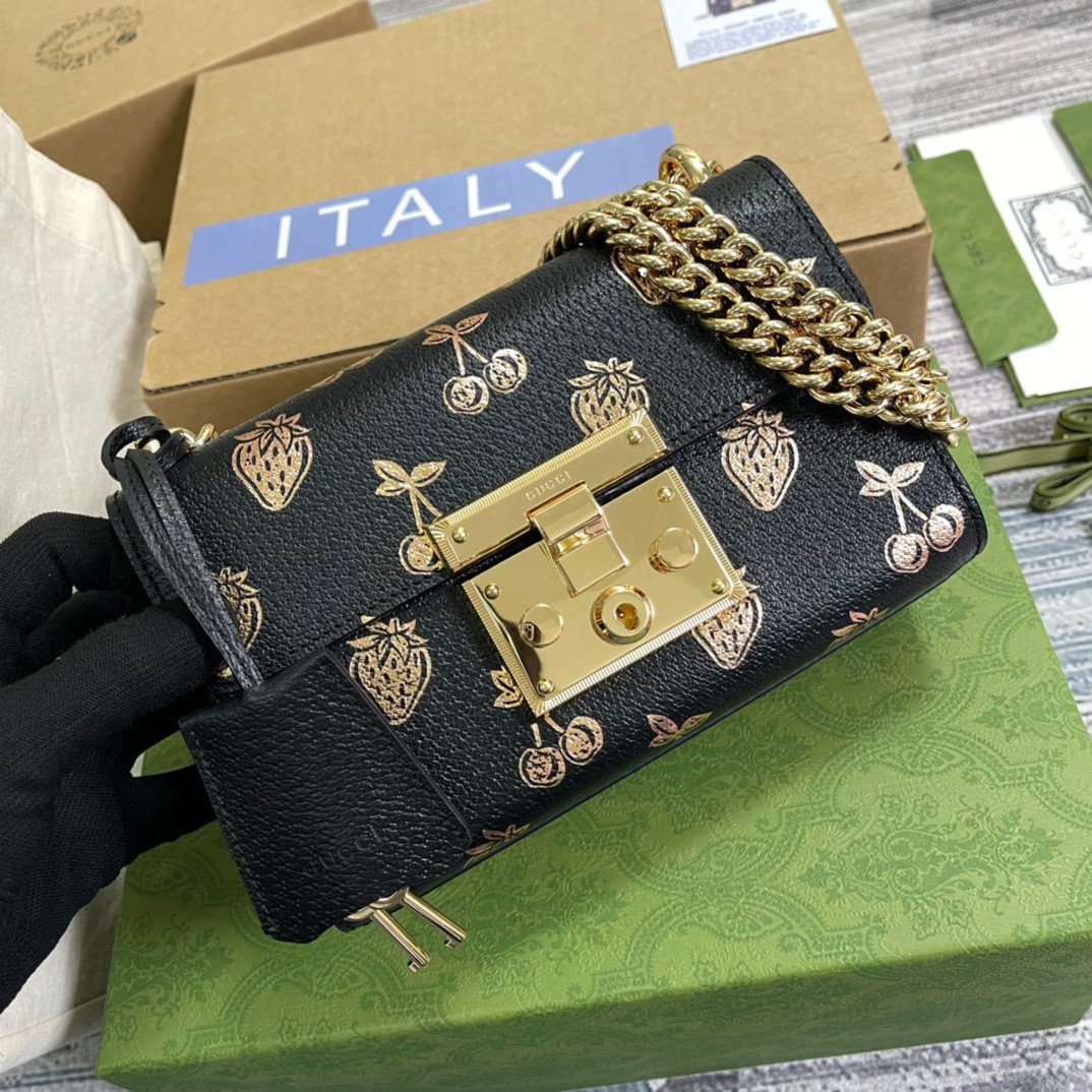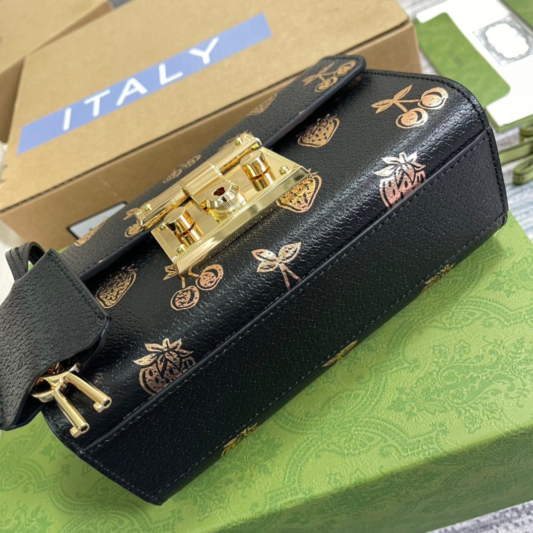 古驰 Padlock 小号 单肩包20厘米 金属质感草莓&樱桃印花 版本
