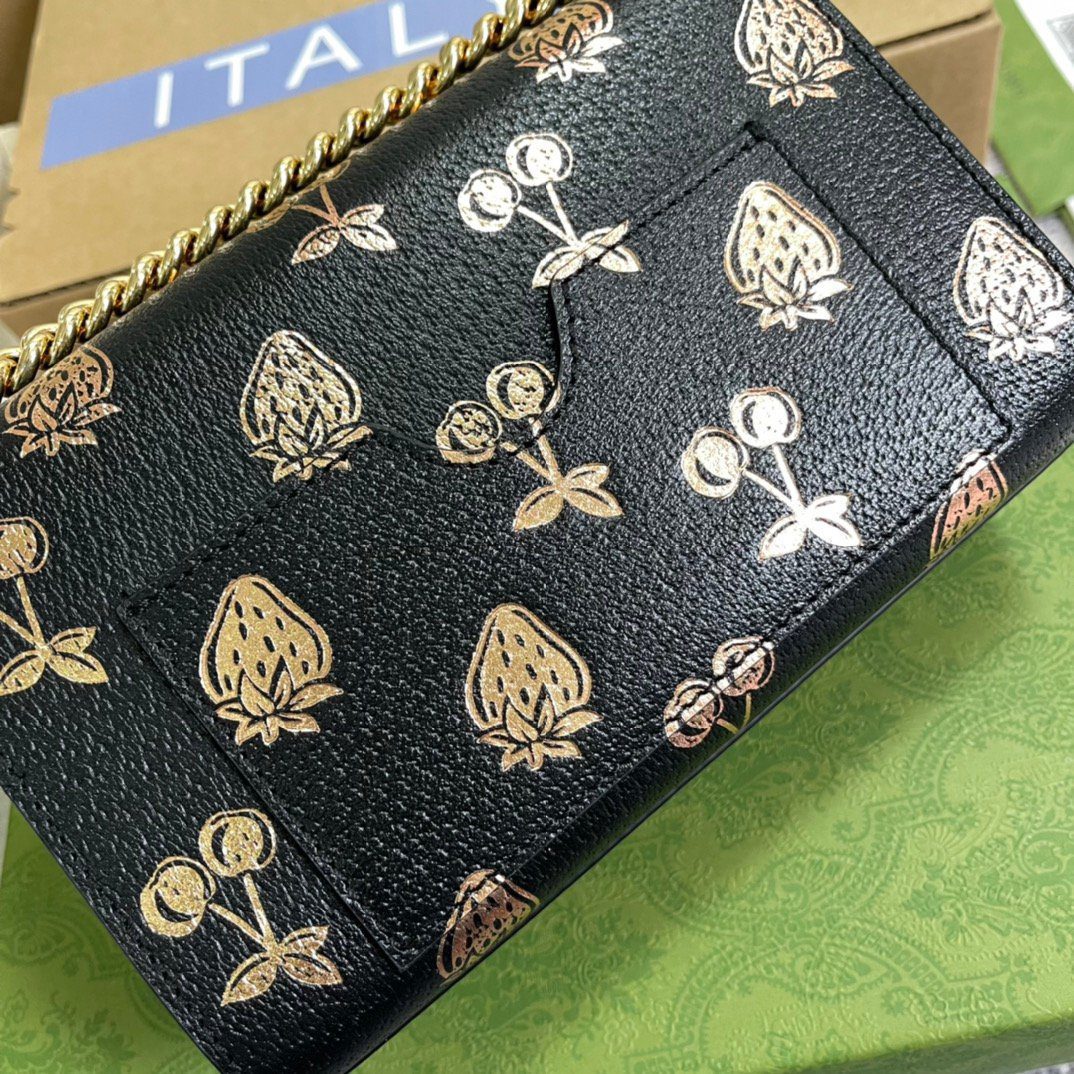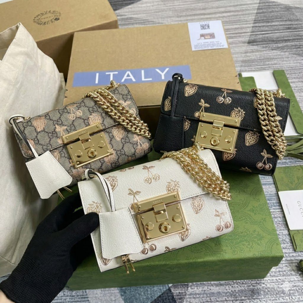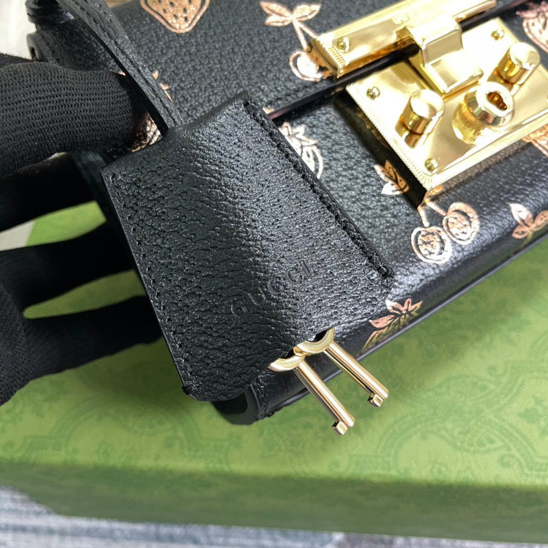 古驰 Padlock 小号 单肩包20厘米 金属质感草莓&樱桃印花 版本