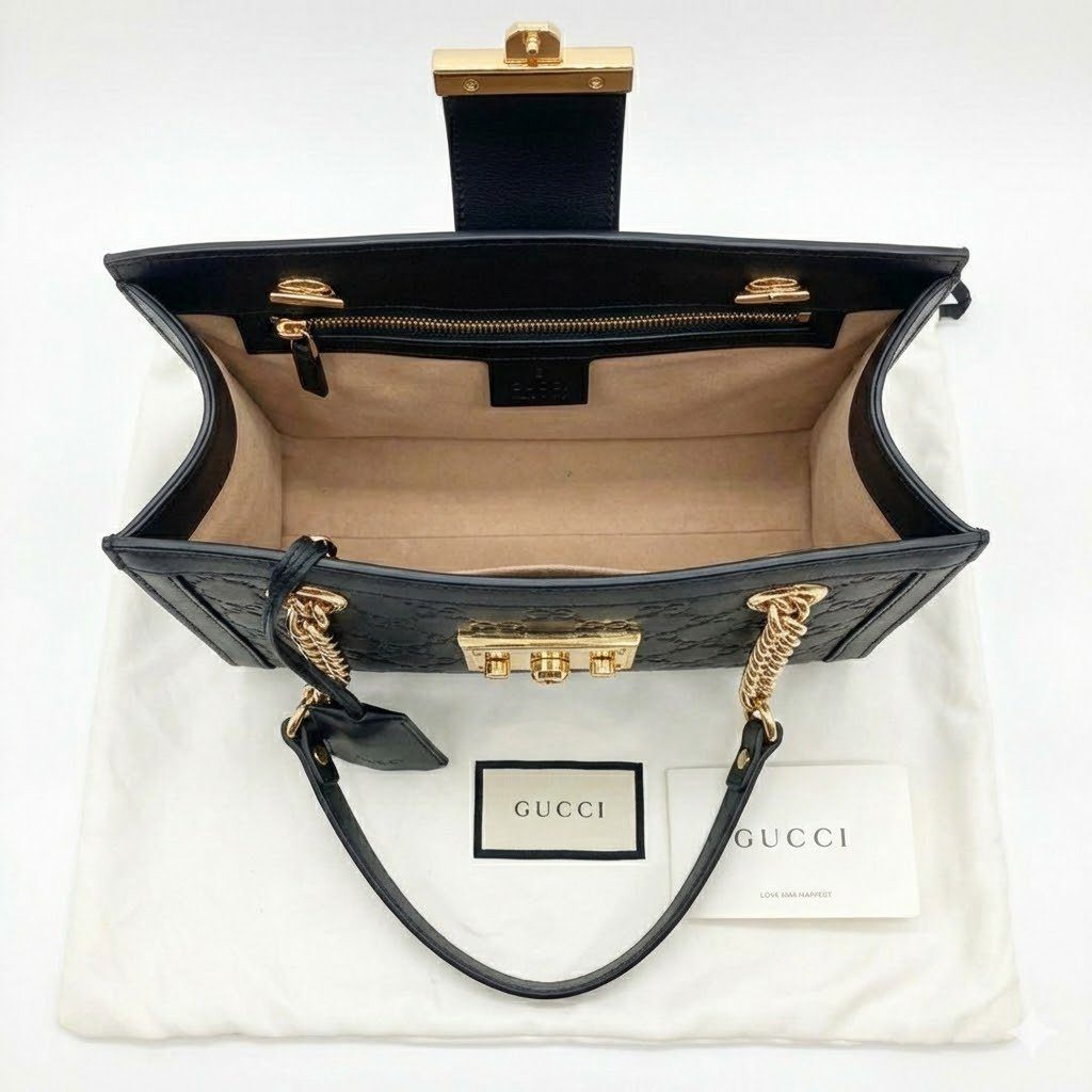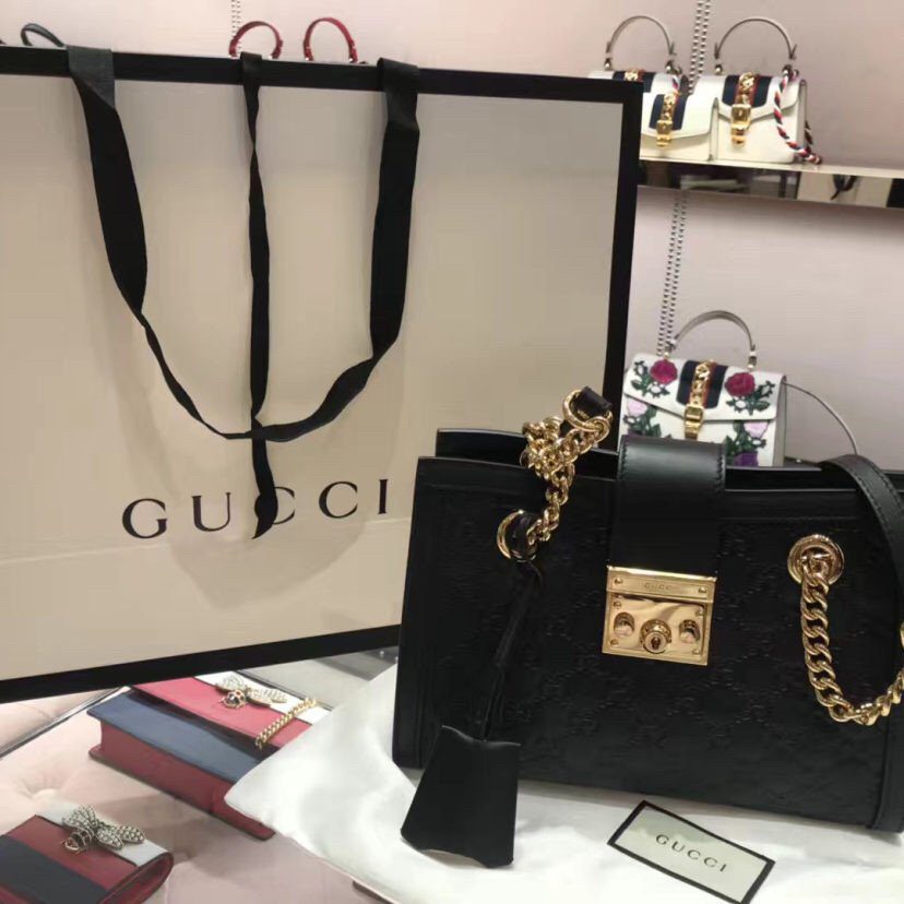 Gucci Padlock 中号单肩包呈现出极具结构感且优雅迷人的轮廓,其设计灵感直接源自品牌历史档案库中的经典包型。这款作品严格遵循正宗的“原厂”制作标准打造,巧妙融合了历史档案的复古魅力与现代工艺的卓越品质。