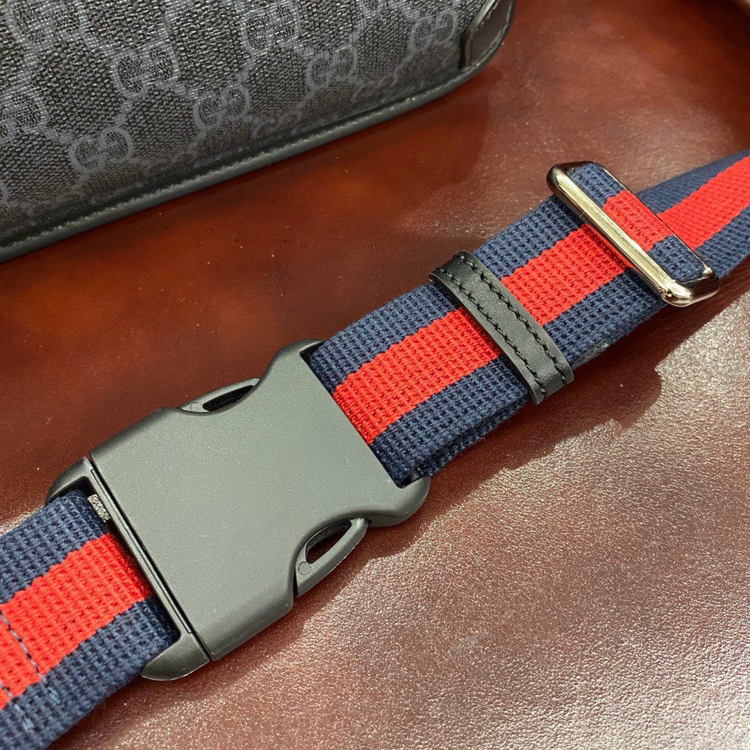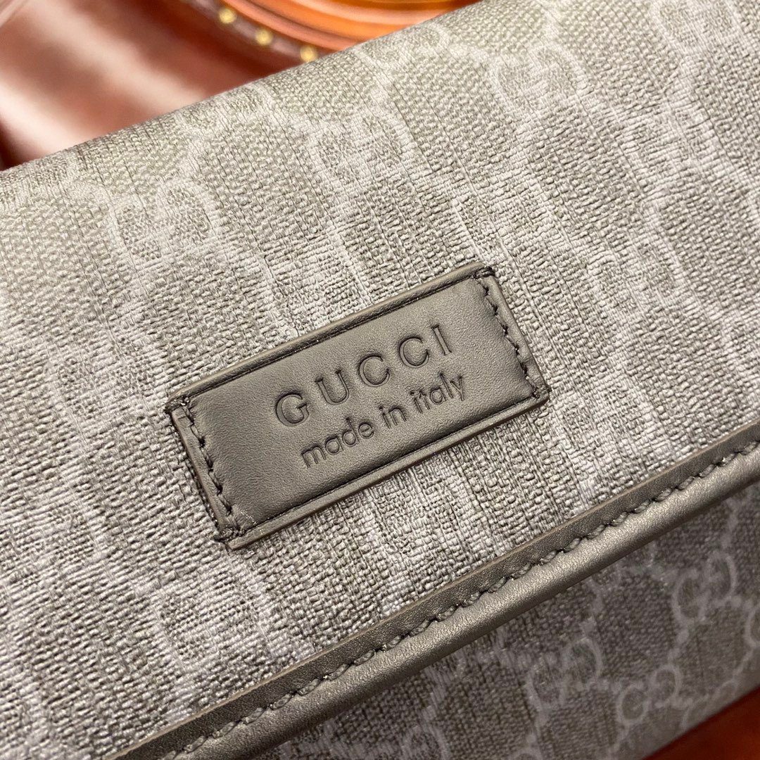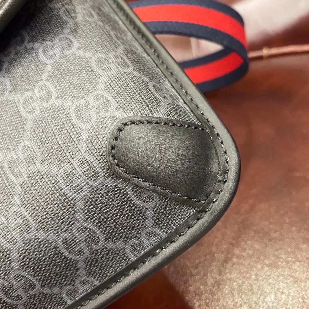 **材质:** 采用黑灰配色 GG Supreme 帆布,搭配优质“原厂级”皮革饰边及转角加固细节。