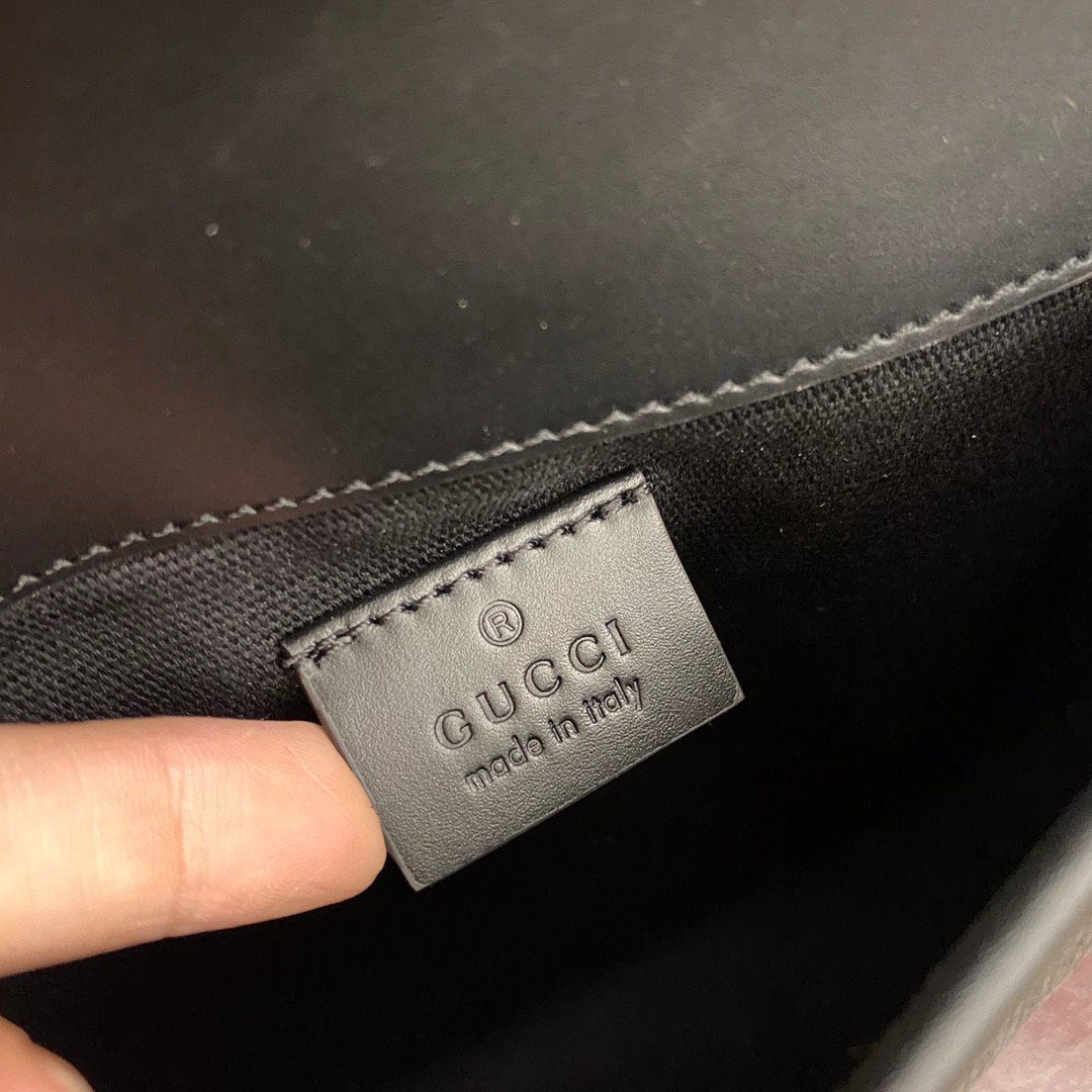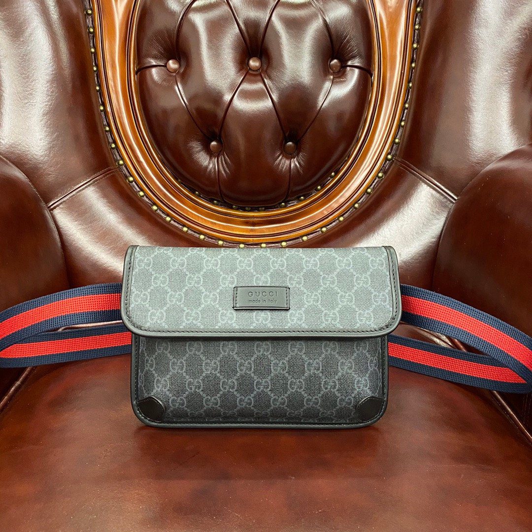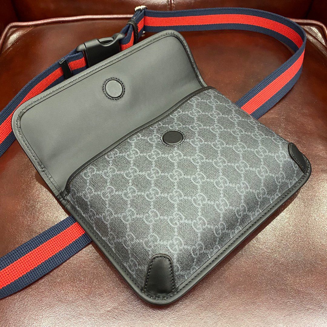 **材质:** 采用黑灰配色 GG Supreme 帆布,搭配优质“原厂级”皮革饰边及转角加固细节。