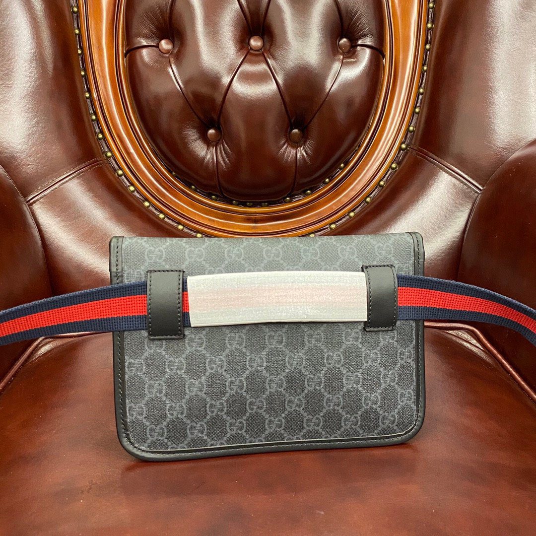 包袋采用稳固的前翻盖闭合设计,确保您的随身物品安全无虞。为了实现最大的造型灵活性,它配备了一条高度可调节的加厚编织背带,并饰有品牌标志性的蓝红 Web 条纹。您可以选择经典的腰间佩戴方式,亦可将其斜挎于胸前,打造出时下流行的潮流胸包造型,尽情探索都市风情。