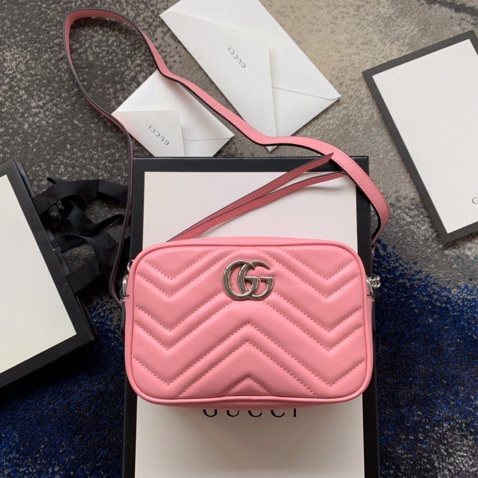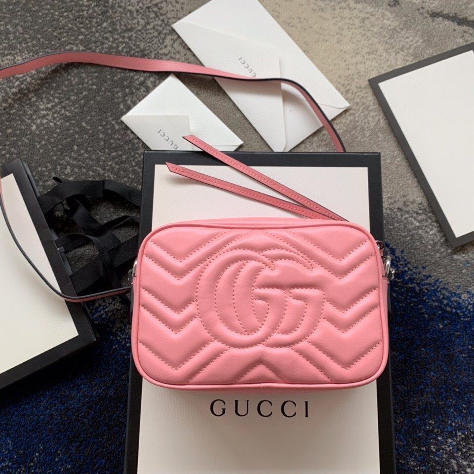 **设计亮点:** 标志性的 V 形绗缝皮革搭配双 G(Double G)金属配件。