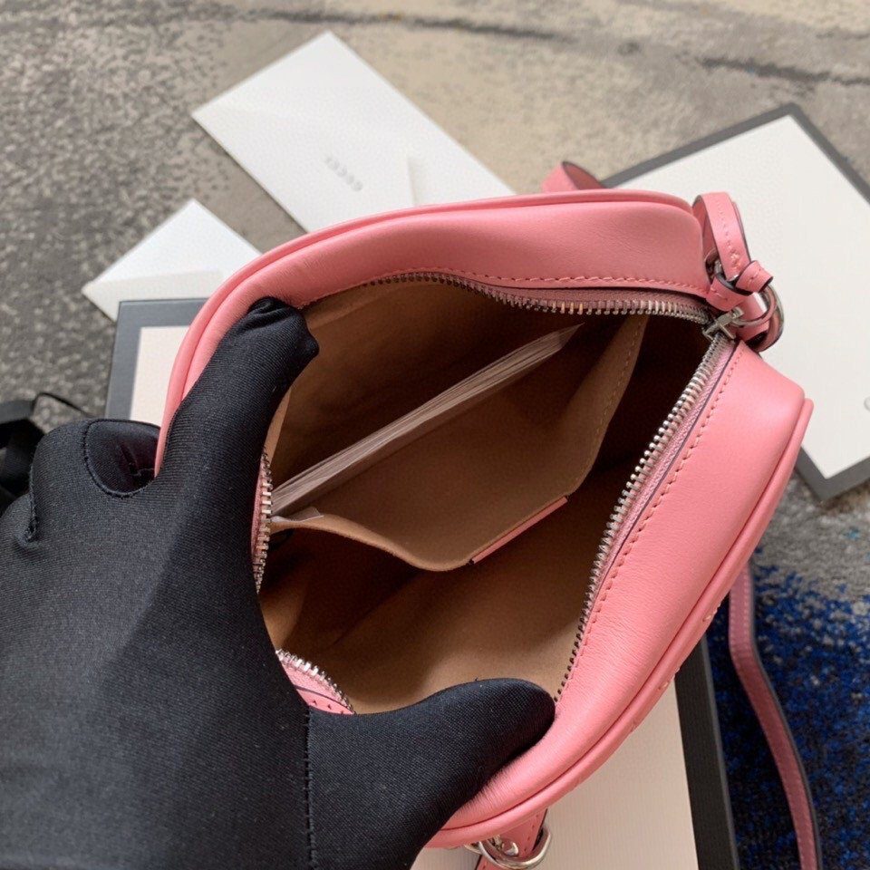 这款迷你包采用顶级的“原厂级”意大利皮革精心打造,触感奢华且柔韧细腻。包身外侧饰有该系列标志性的 V 形绗缝(Matelassé)纹理,正面中央醒目地镶嵌着经典的互扣式双 G(Double G)金属配件,设计相得益彰,美不胜收。