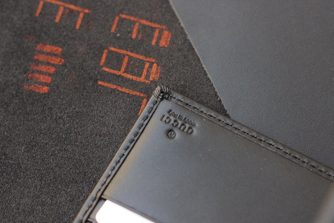 材质:优质黑色皮革,饰以通体压纹 GG 图案,搭配同色系皮革饰边。
