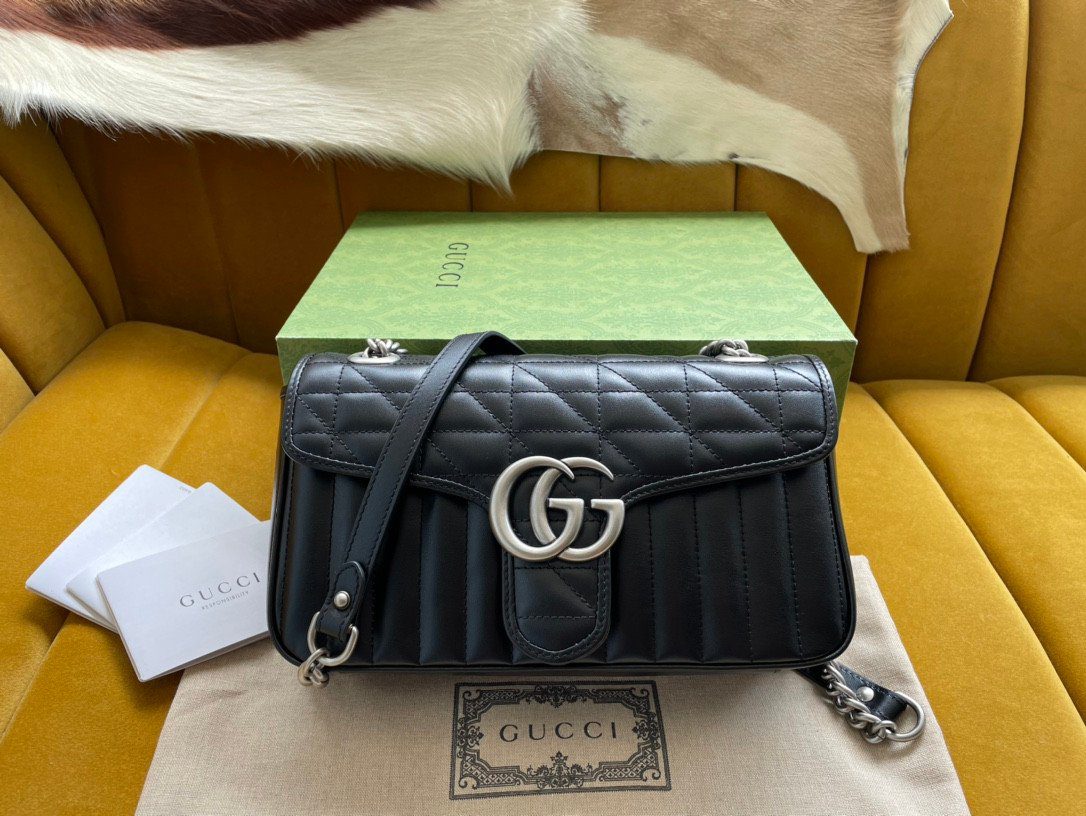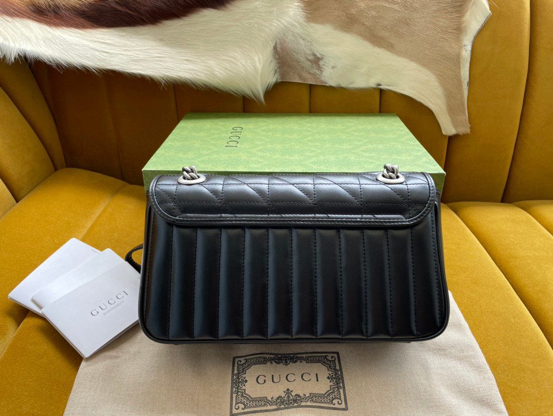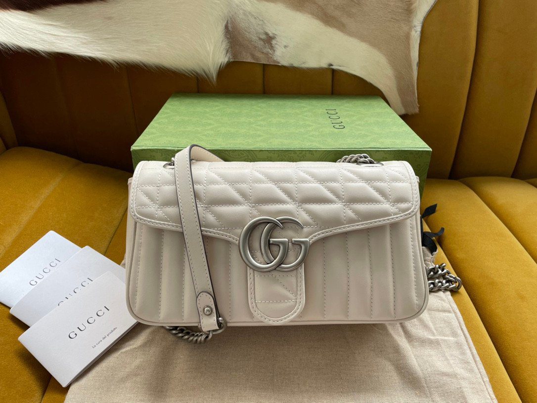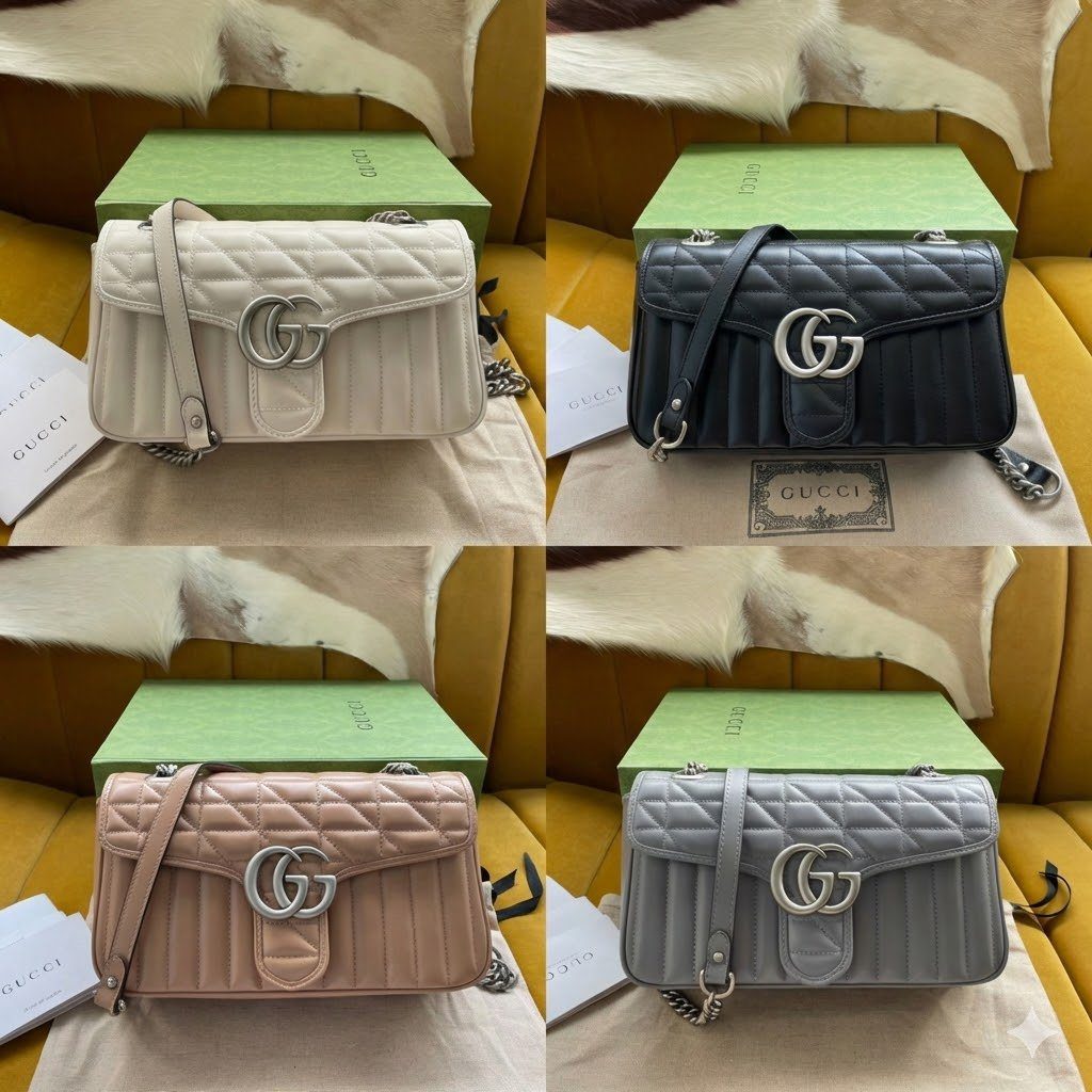 此款包袋严格遵循“原厂”级高标准精工细作,选用触感柔软细腻的优质皮革打造而成。作为 Aria 系列的特别版本,它为经典的 Marmont 风格注入了全新的几何美学:包身外部巧妙融合了垂直与斜向交织的绗缝缝线图案,呈现出别具一格的视觉效果。包盖正面饰有该系列的标志性“双 G”字母交织金属配件,采用光泽流畅的现代感银色饰面,与焕然一新的绗缝工艺相得益彰。