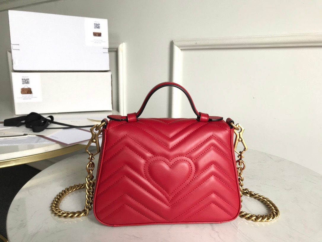 **设计特色:** 饰有经典的 V 形(Matelassé)绗缝工艺,并点缀标志性的做旧金色双 G(Double G)金属徽标。