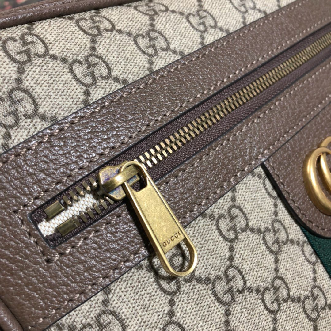每一款包袋均依照严苛标准打造,其包身外层选用品牌经典的棕色 GG Supreme 帆布制成。这种极具耐用性的材质辅以进口优质牛皮饰边,不仅带来极致奢华的触感体验,更确保了包袋结构的持久稳固。包身正面醒目地饰有品牌标志性的红绿织带(Web stripe),并由一枚光泽璀璨、达到原厂级品质的金色双 G(Double G)金属徽标点缀其间,尽显尊贵风范。