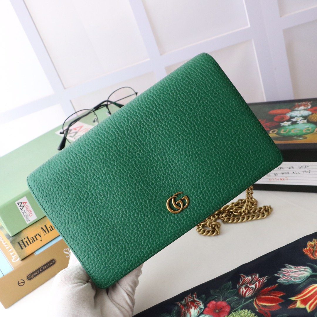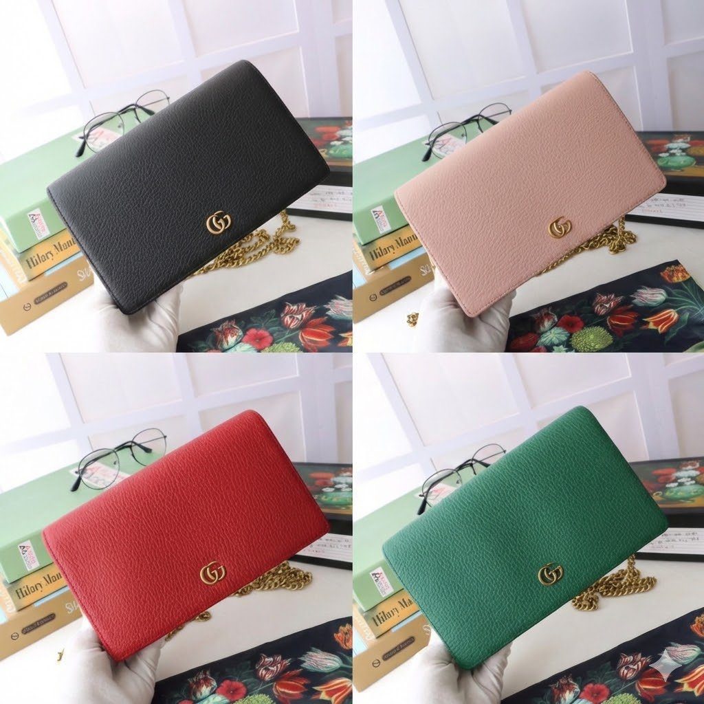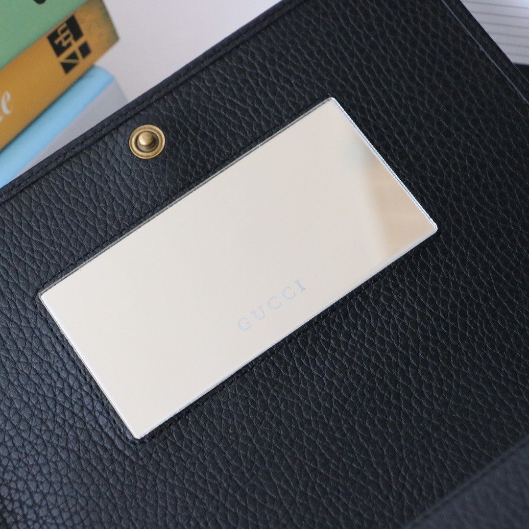 包身由顶级优质的全粒面牛皮精心打造,外观呈现出美丽且富有层次感的荔枝纹理,既彰显深邃的奢华感,又具备极高的耐用性。简约的信封式翻盖设计,优雅地饰有品牌经典的“双G”标志;该标志采用高品质的进口金属五金制成,并辅以精致考究的做旧金色饰面。