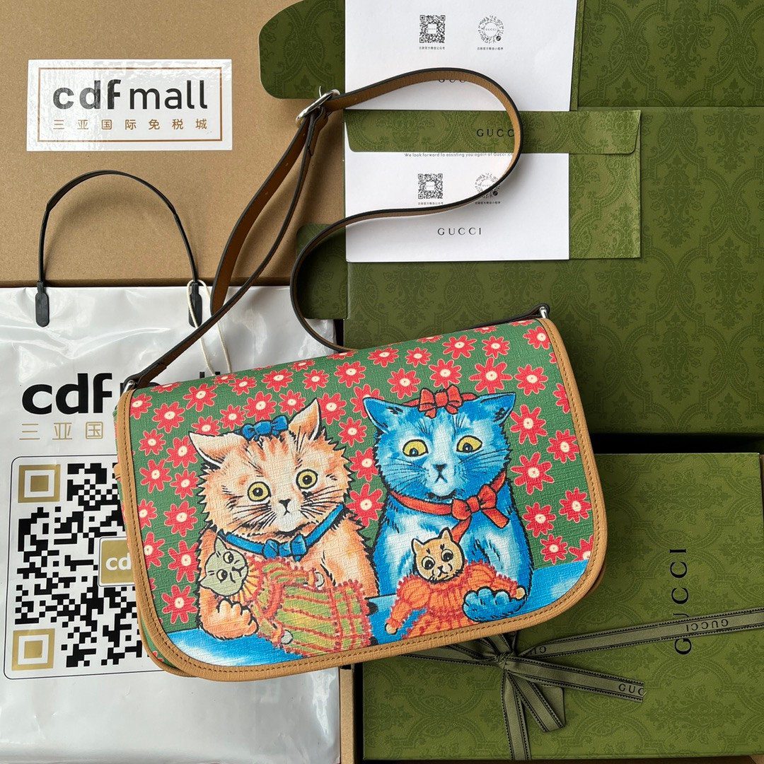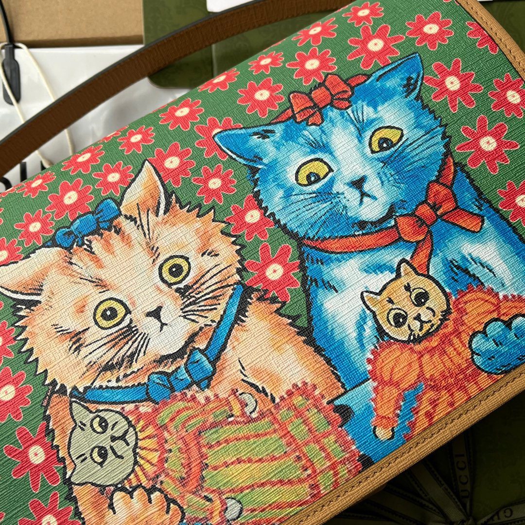用这款令人心动的新品——Gucci 花卉猫咪信使包(Gucci Floral Cat Messenger Bag),为您的日常穿搭增添一抹奇趣与俏皮的魅力。这款单品巧妙地将品牌经典的包型轮廓与充满想象力且轻松愉悦的图案相结合,使其成为每一位时尚爱好者的瞩目配饰。