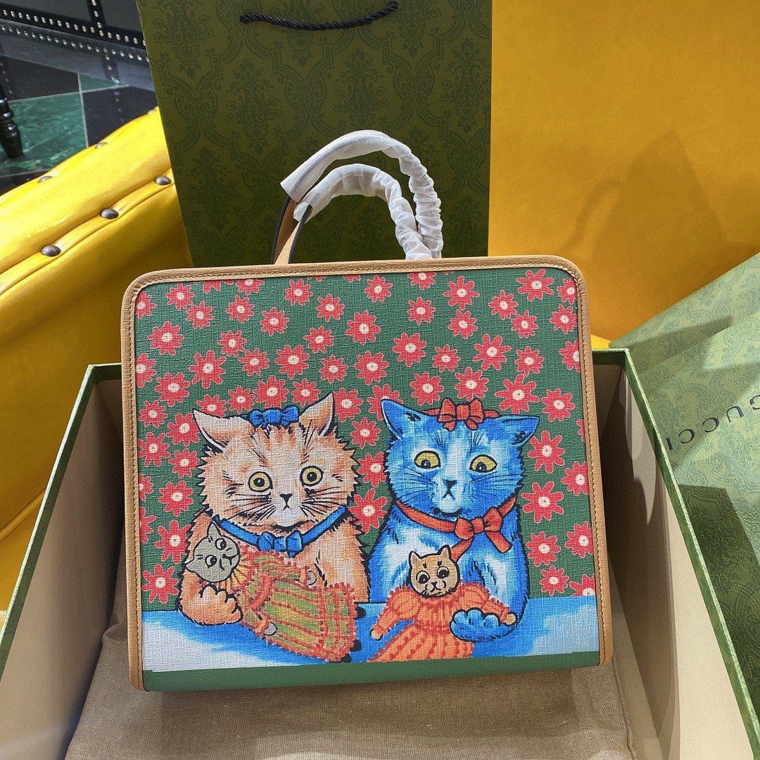 这款充满奇趣且极具收藏价值的 Gucci 儿童托特包,将为您的奢华藏品增添一抹亮色。该多色托特包从享誉全球的英国著名插画家路易斯·韦恩(Louis Wain)——以其迷人的猫咪画作而闻名——汲取了深厚的灵感,堪称富有想象力设计的杰作。
