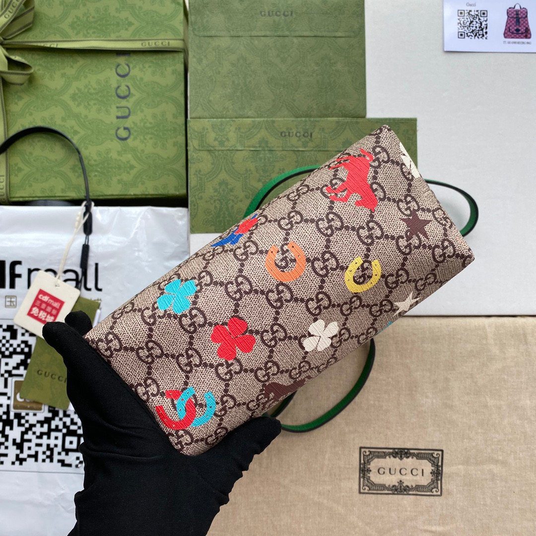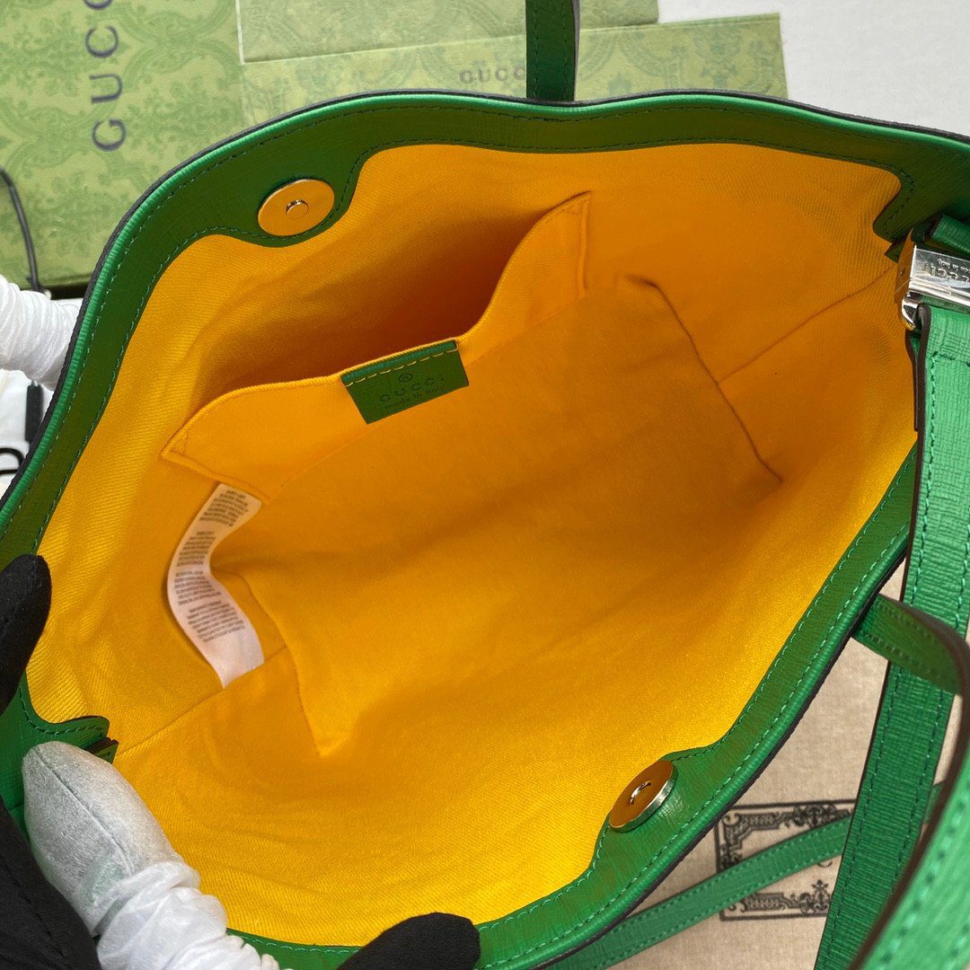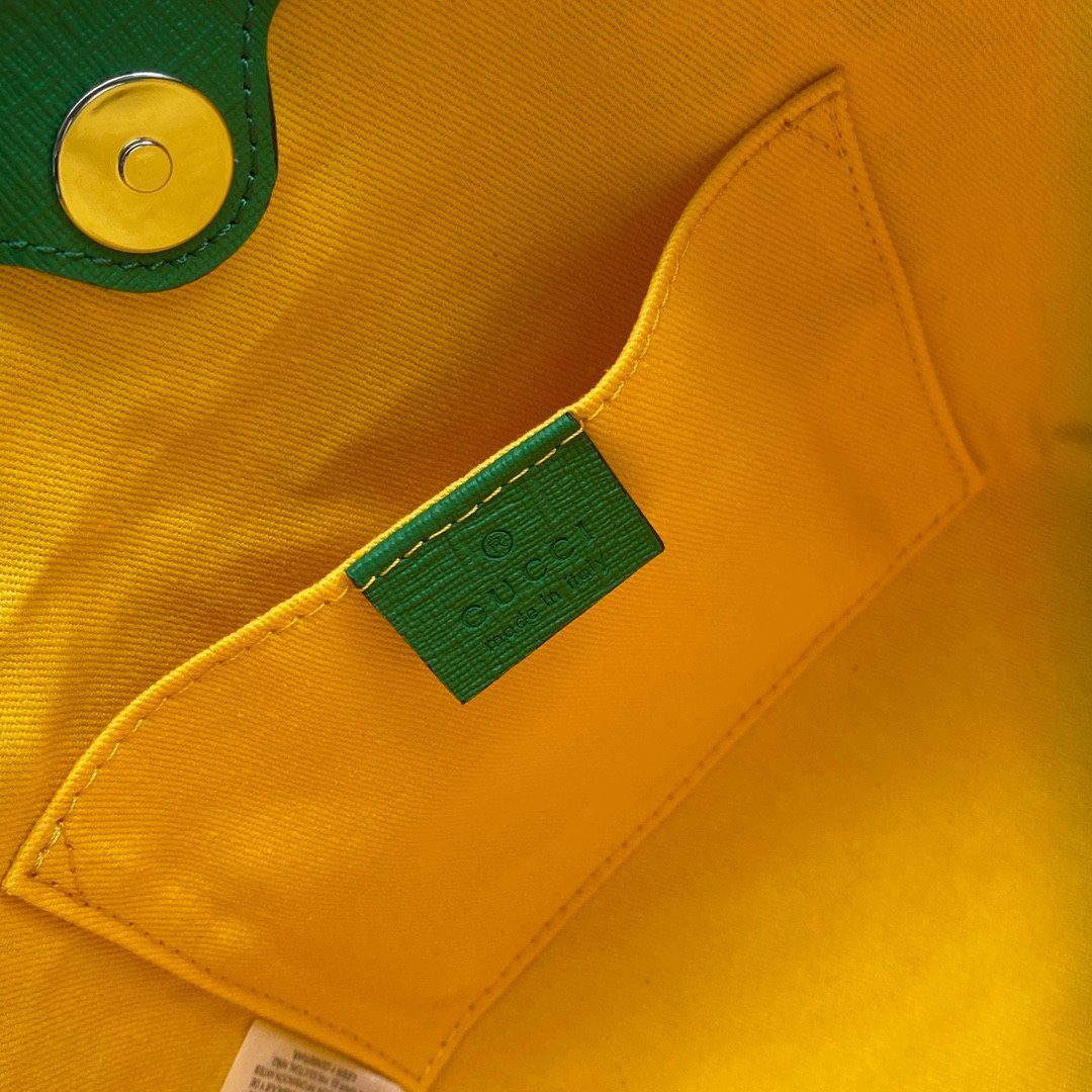 用这款精致的 Gucci 迷你托特包(款号 585933)为您的日常穿搭增添一抹俏皮的奇趣色彩。它完美融合了 Gucci 的品牌传承与充满趣味、活泼生动的设计风格,堪称一款引人注目的时尚配饰。包身选用标志性的米色与乌木色 GG Supreme 帆布制成,为包面上醒目的图案提供了完美的衬托背景。