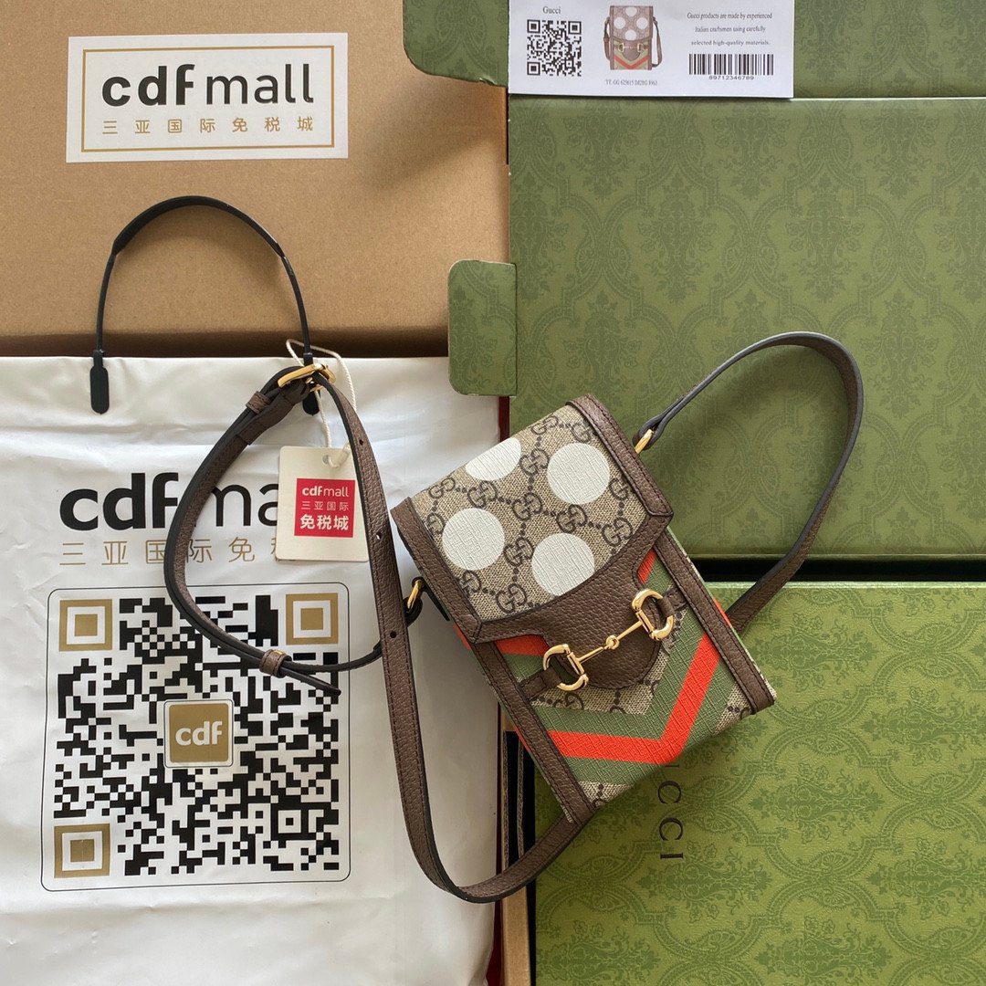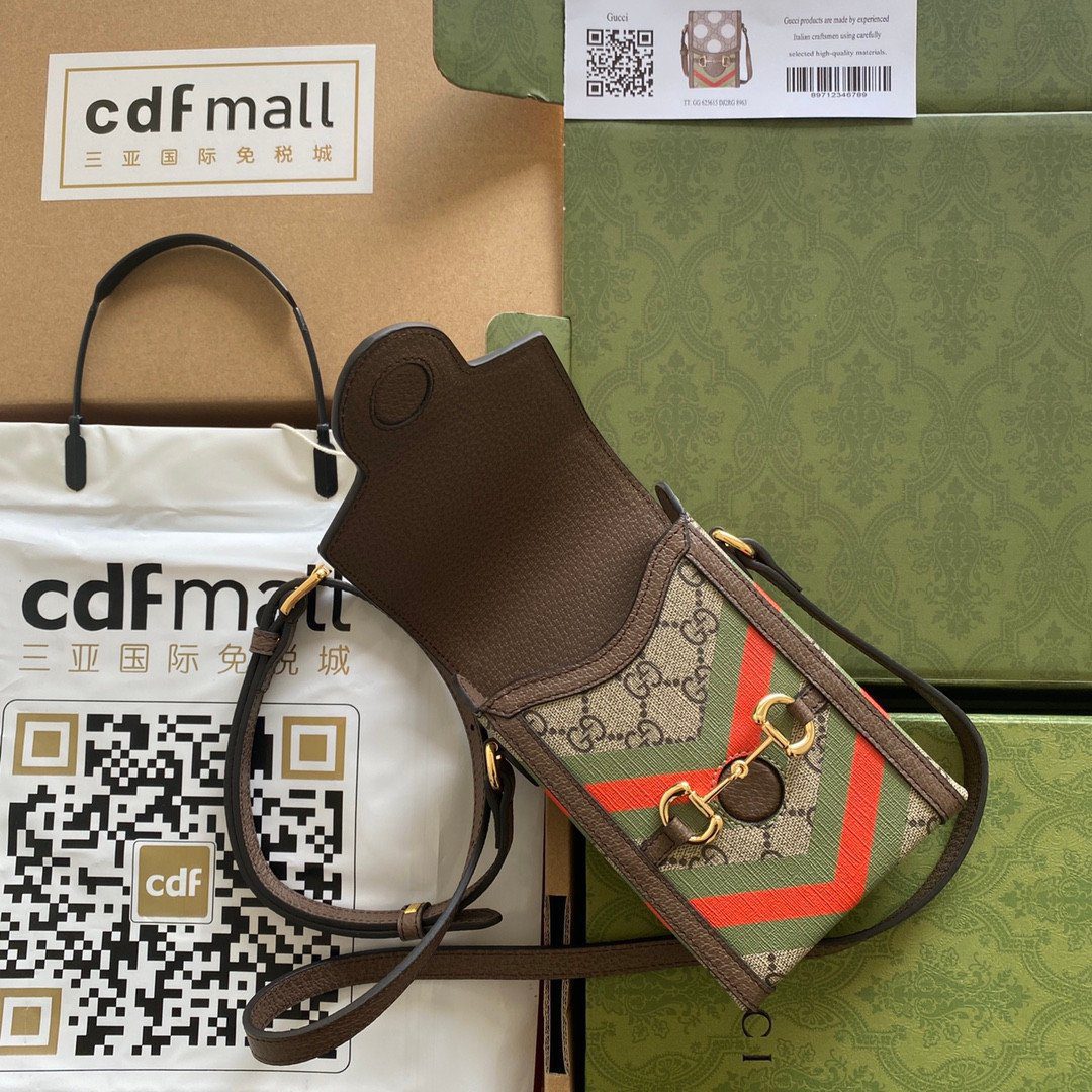 **时尚与实用的设计** 包身前翻盖由标志性的金色马衔扣(Horsebit)五金件稳固固定,并由浓郁的棕色饰边精美勾勒。这款迷你包采用利落的竖款廓形设计,尺寸比例恰到好处,可轻松收纳您的智能手机及各类常用卡片。包身配有一条纤细且可调节的棕色皮革肩带,是您轻松实现斜挎佩戴的理想伴侣。