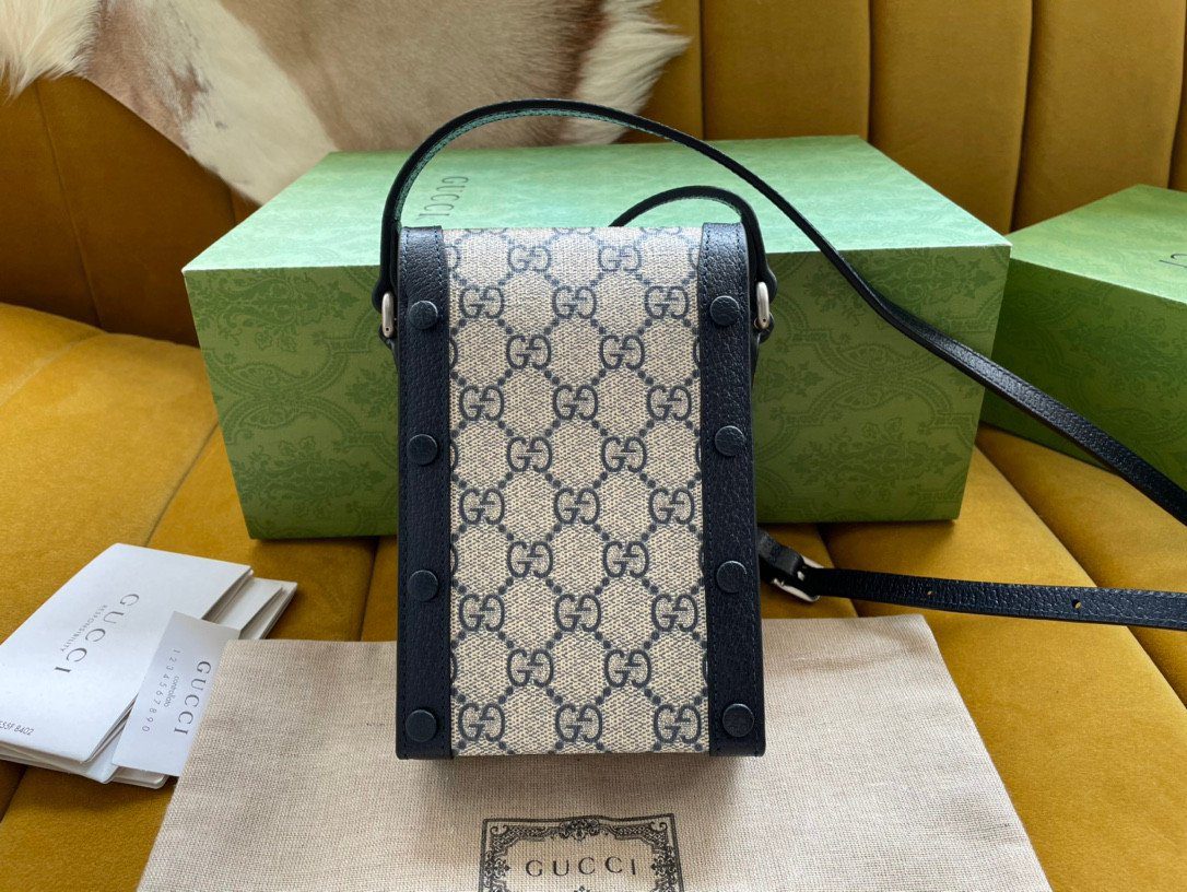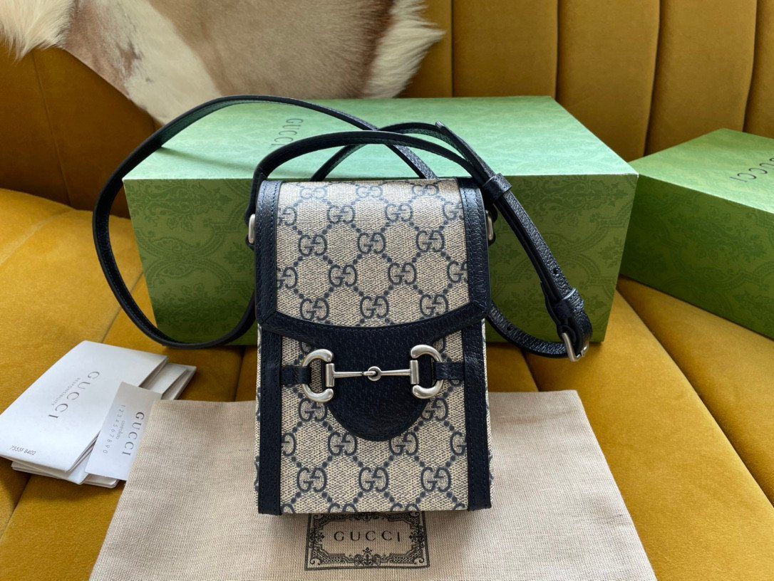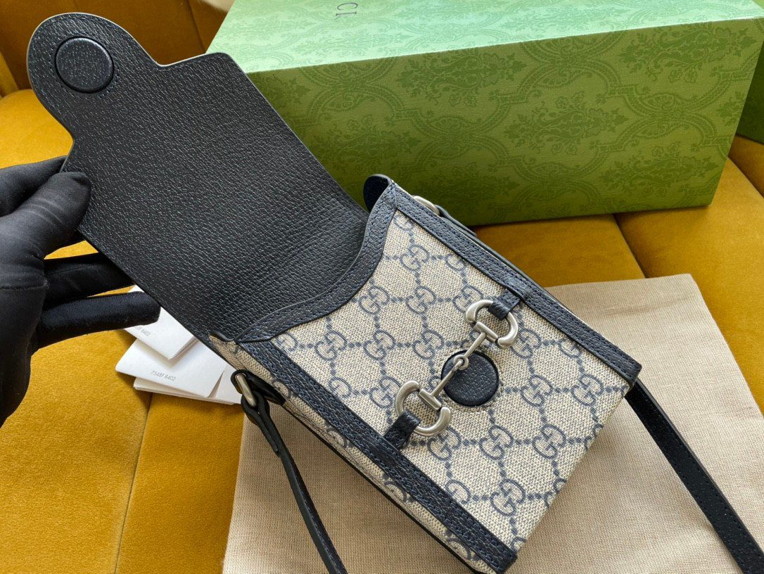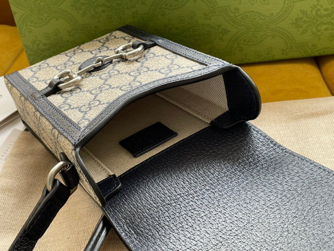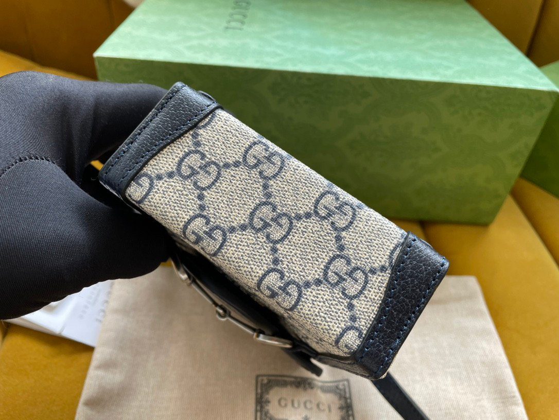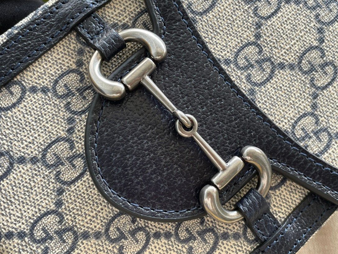 **马术传承与优质材质** 这款包袋秉承卓越的制作标准,选用进口 PVC 材质(旨在呈现品牌标志性的 GG 帆布纹理),并辅以优质的原厂皮革饰边,尽显优雅格调。设计的点睛之笔在于其标志性的马术风格五金配件——包盖正面饰有享誉全球的“双环扣与横杆”图案。