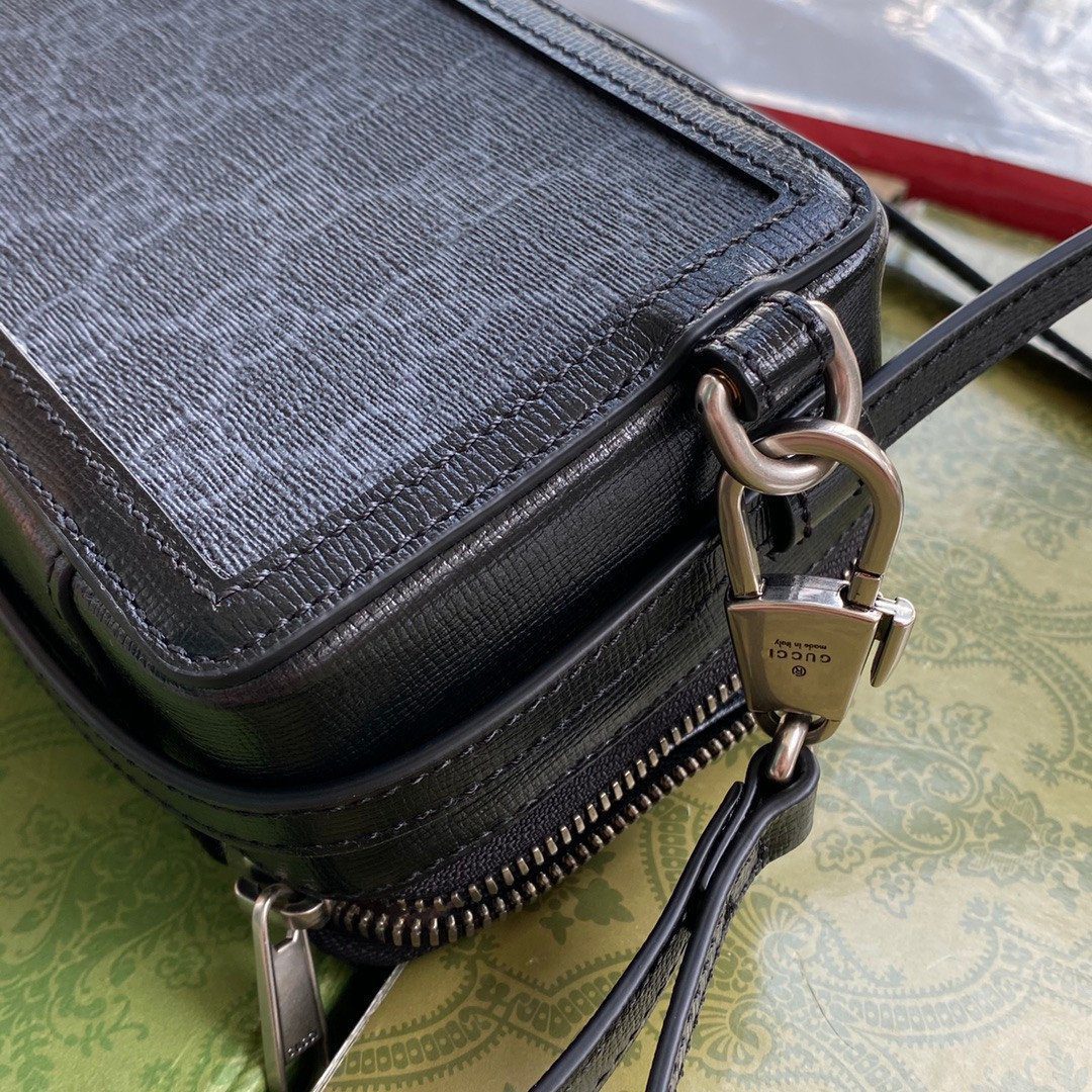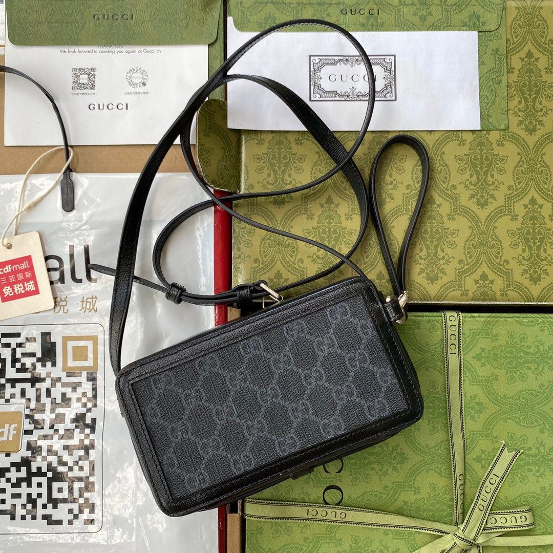 **卓越工艺与上乘材质** 本款包袋严格遵循精品店的严苛标准打造,选用品牌标志性的 GG Supreme 帆布,呈现出深邃且极具格调的黑灰色调。包身边缘优雅地饰以进口优质黑色牛皮滚边,既确保了奢华的触感,又兼具经久耐用的特性。整体设计辅以原厂级五金配件,每一个细节都彰显出极致精湛的制作工艺。