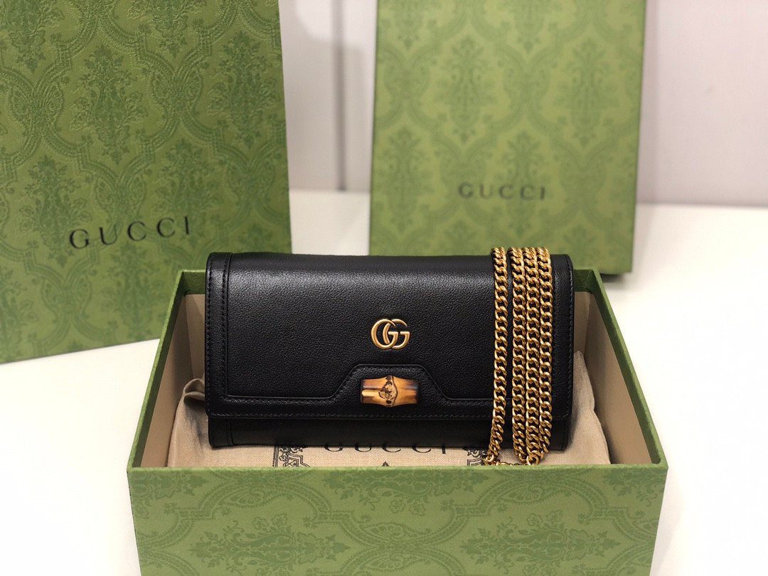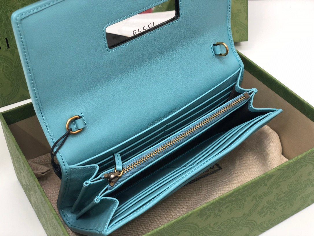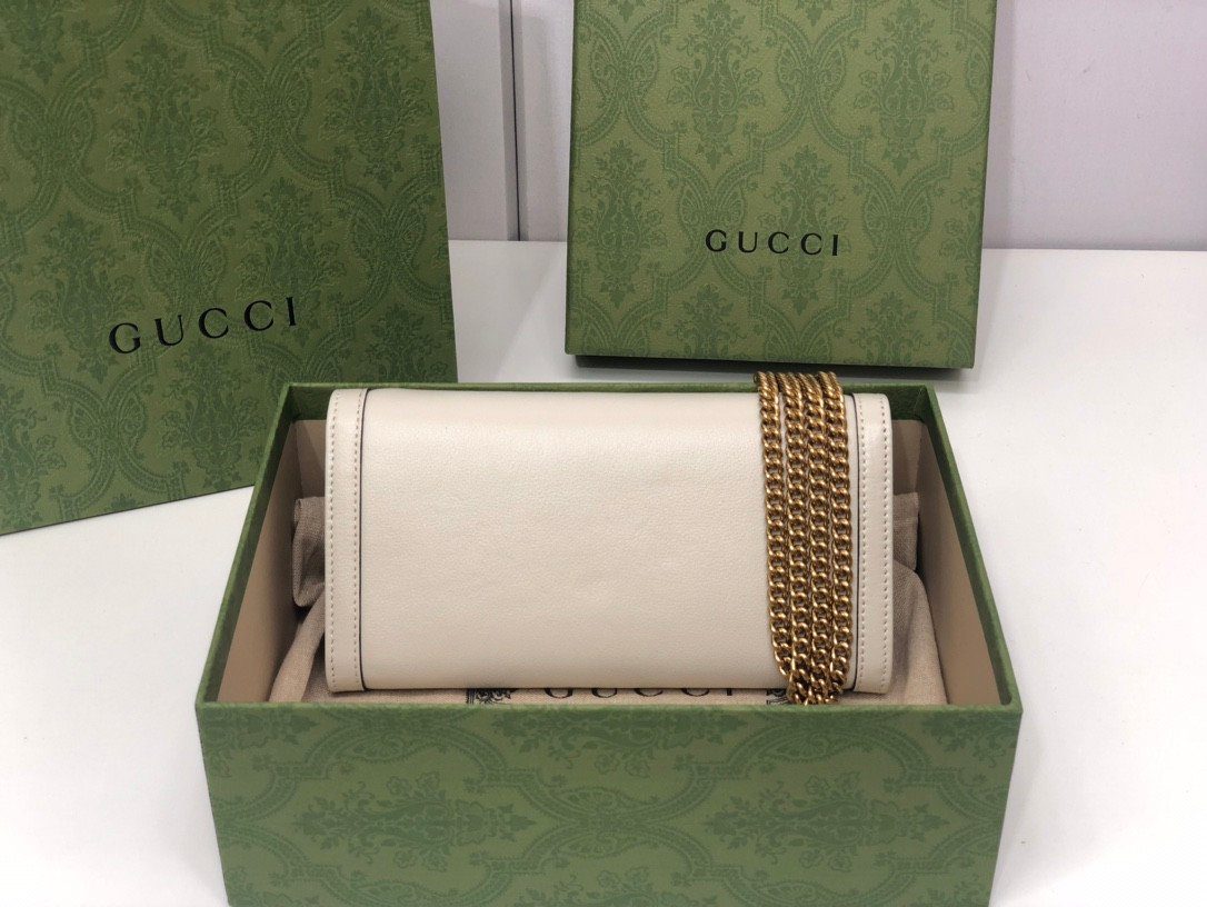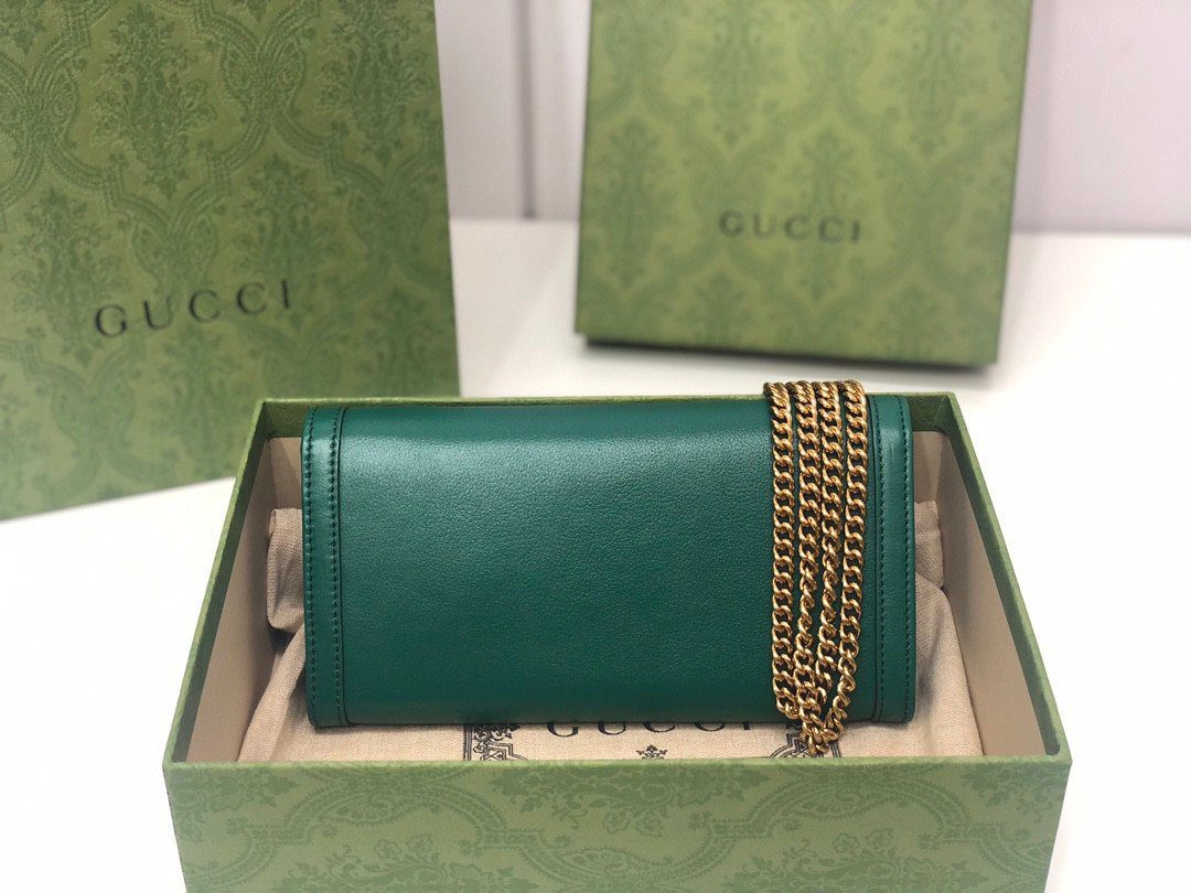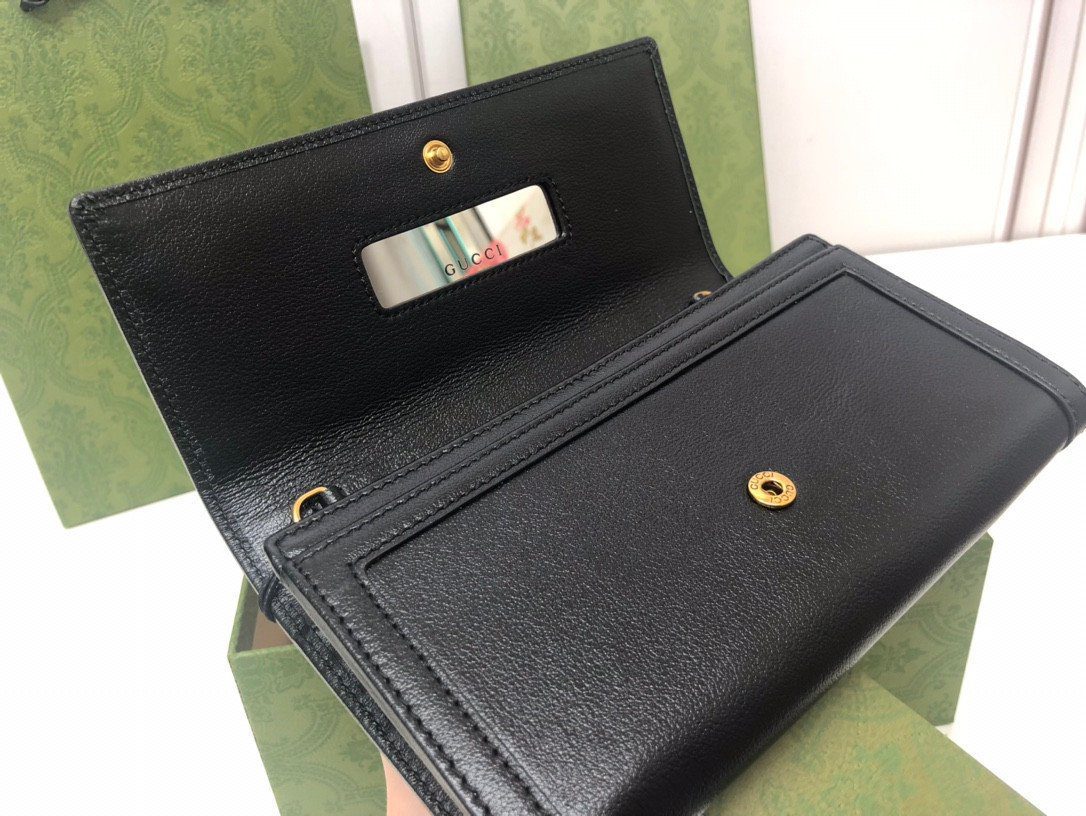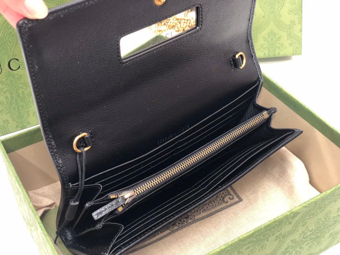 用这款制作精美的 Gucci 皮革链条钱包,为您的晚宴及日常造型增添非凡格调。这款优雅单品完美融合了实用功能与高级时尚设计,淋漓尽致地展现了品牌在奢华材质运用上的灵活性与创新精神。